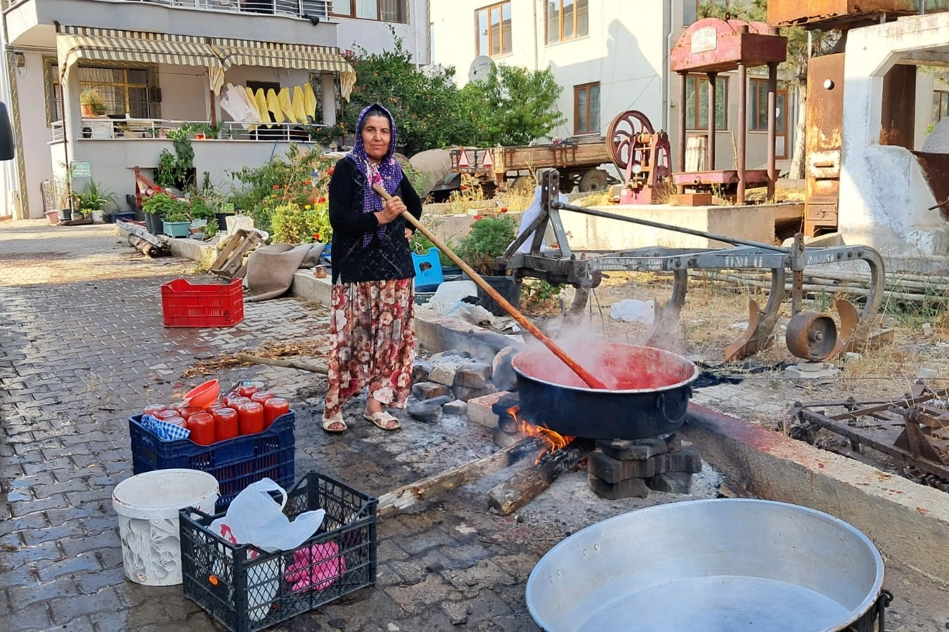 İznik ilçesinde, kazanlarla kışlık salça yapan kadınlar, hem doğal ürün tüketmiş hem de ev ekonomisine katkıda bulunmuş oluyor.