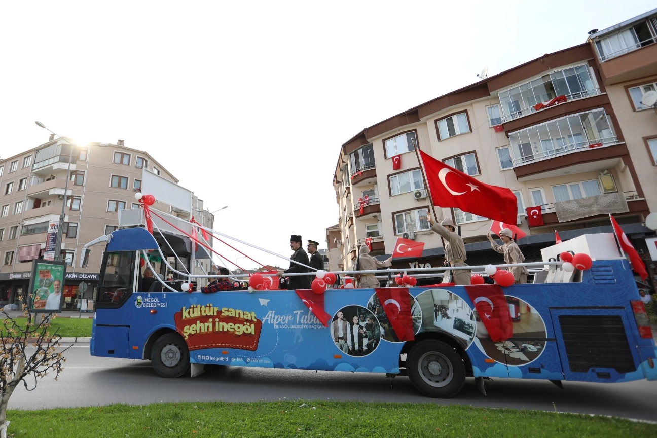 İnegöl’de Cumhuriyet Bayramı düzenlenen etkinliklerle büyük bir coşkuyla kutlandı. 29 Ekim günü, resmi törenlerin ardından İnegöl Belediyesi Kültür Sanat Otobüsüyle cumhuriyet coşkusu tüm şehre yayıldı. 15.00’da başlayan kültür sanat otobüsü turu, 2 saat boyunca şehir merkezinde marşlar eşliğinde devam etti.