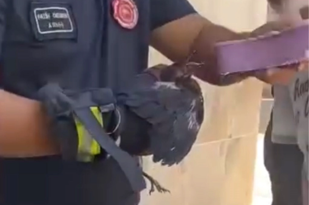 Günlerdir aç ve yorgun olduğu tahmin edilen yavru karga, kurtarılmasının ardından yeniden doğaya salındı. Olayı izleyen vatandaşlar duygu dolu anlar yaşarken, kurtarma anı cep telefonu kamerasına saniye saniye yansıdı.