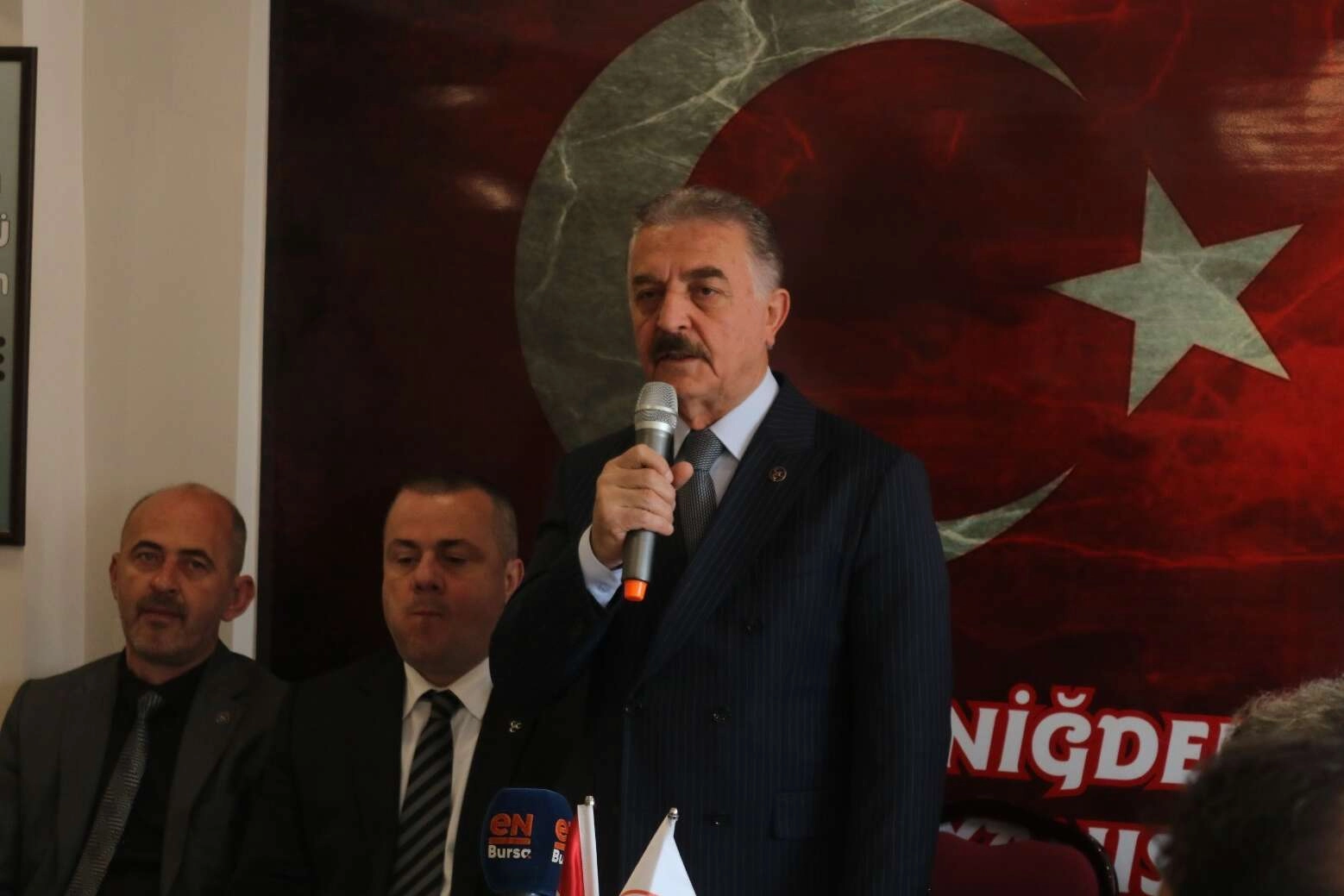MHP Genel Sekreteri ve Bursa 1. Bölge Milletvekili Adayı İsmet Büyükataman ziyaret ettiği Bursa Niğdeliler Kültür Dayanışma ve Yardımlaşma Derneği’nde seçim gündemine dair açıklamalarda bulundu. Millet İttifakı cumhurbaşkanı adayı Kemal Kılıçdaroğlu’nun Van’da gerçekleştirdiği mitingde atılan sloganlara tepki gösteren Büyükataman, “Bu ülkenin hâkimi, savcısı sorumluluklarını biliyorsa bununla alakalı mutlaka bir soruşturma başlatmaları gerekiyor” ifadelerini kullandı.