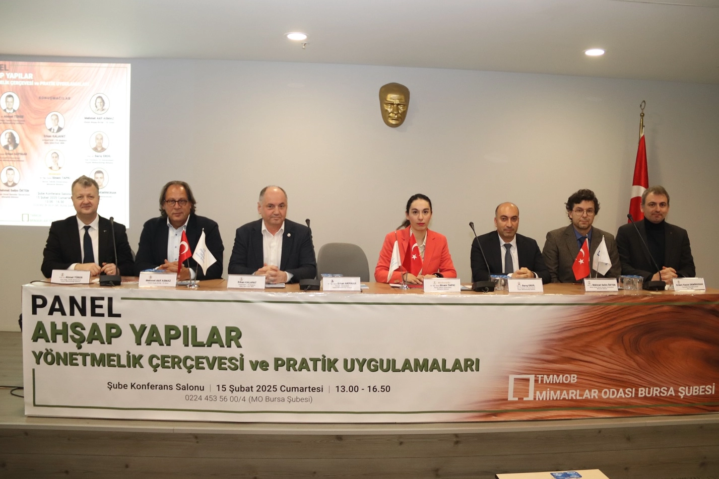 Bursa Teknik Üniversitesi Mimarlık Bölümü Dr. Öğretim Üyesi Sinem Tapkı’nın moderatörlüğünde gerçekleştirilen panelde; ODTÜ İnşaat Mühendisliği Bölümü’nden Prof. Dr. Ahmet Türer, Ulusal Ahşap Birliği Yönetim Kurulu Üyesi Mehmet Akif Asmaz, AHŞAPDER Yönetim Kurulu Başkanı Ağaç İşleri Endüstri Mühendisi Erkan Kalafat, Kocaeli Üniversitesi İnşaat Mühendisliği Bölümü’nden Dr. Öğretim Üyesi Erkan Akpınar, Van Yüzüncü Yıl Üniversitesi İnşaat Mühendisliği Bölümü’nden Doç. Dr. Barış Erdil, Mimar Sinan Güzel Sanatlar Üniversitesi Mimarlık Bölümü’nden Doç. Dr. Mehmet Selim Ökten ve Yapıstatik Proje Mühendislik firmasından İnşaat Yüksek Mühendisi Erdem Kazım Demirkıran konuşmacı olarak yer aldı.