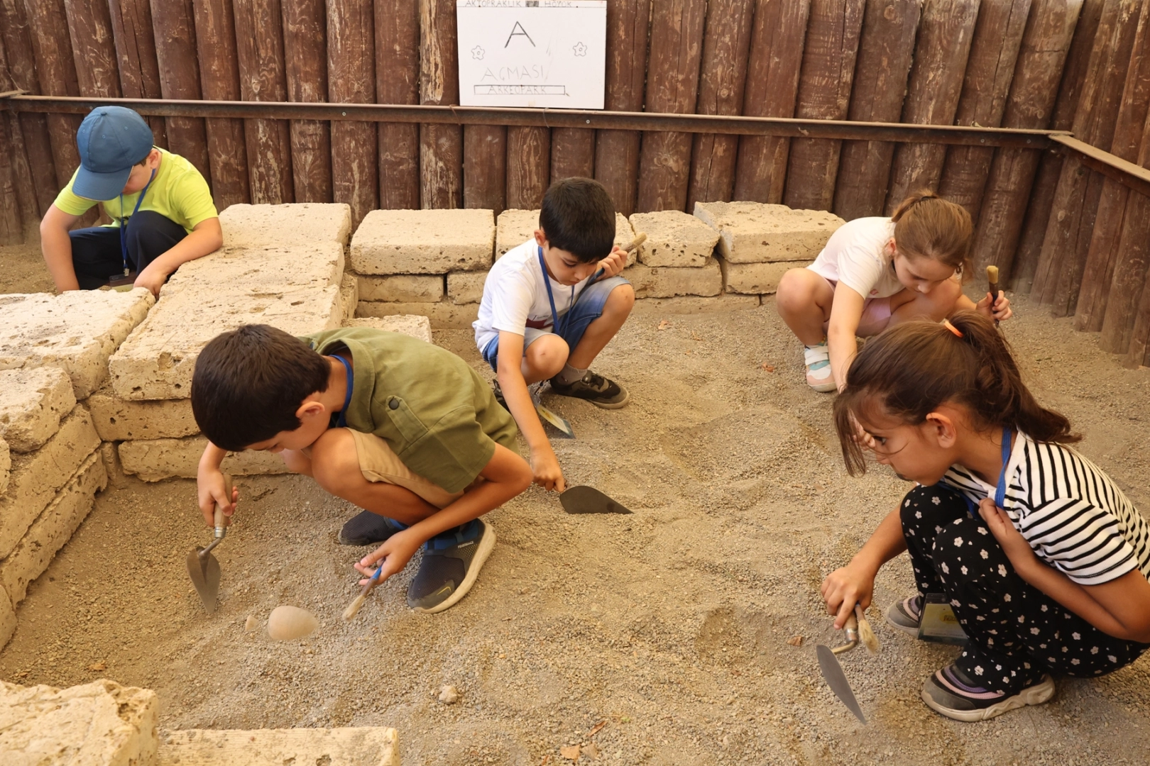Temmuz ayı boyunca farklı mahallelerden gelen çocuklara, uzman eğitmenler eşliğinde zengin bir içerik sunuluyor. “Zamanda Yolculuk: Arkeopark Gezisi” ile kazı alanlarını ve arkeolojik eserleri gözlemleyen çocuklar, “Deneysel Kazı Atölyesi” ile arkeolog gibi kazı yapmanın temel aşamalarını öğreniyorlar.