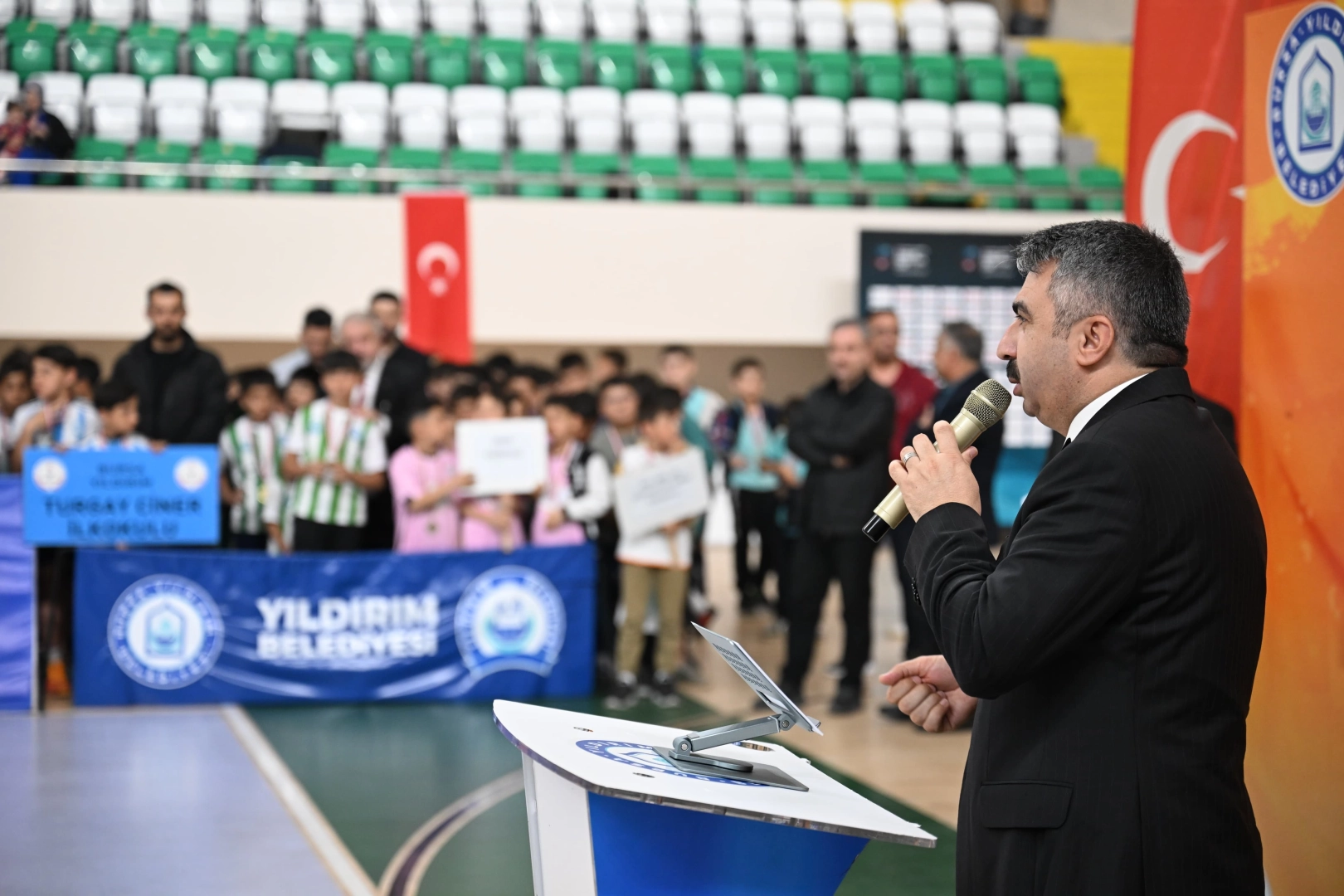Yıldırım Belediyesi, Gençlik Spor İlçe Müdürlüğü ve Milli Eğitim İlçe Müdürlüğü paydaşlığında Okul Sporları İlçe Şenlikleri düzenledi. Naim Süleymanoğlu Spor Kompleksi’nde gerçekleşen Okul Sporları İlçe Şenlikleri Ödül Töreni ve Malzeme Dağıtımı programına Yıldırım Belediye Başkanı Oktay Yılmaz’ın yanı sıra Yıldırım İlçe Kaymakamı Metin Esen, İlçe Milli Eğitim Müdürü Mustafa Sevinç, İlçe Gençlik ve Spor Müdürü Mehmet Demirci, okul müdürleri ve sporcular katıldı. İlkokul kategorisinde, futbol ve beceri koordinasyon parkuru branşlarında yapılan müsabakaların ardından dereceye giren öğrencilere ödülleri verilirken yarışmaya katılan tüm okullara Yıldırım Belediyesi tarafından spor malzemesi dağıtımı yapıldı. Çocukların ve gençlerin fiziksel, sosyal ve duygusal gelişimlerinde sporun ayrı bir önemi var. Bu nedenle Yıldırım’ı bir spor kenti yapmak ve sporu tabana yaymak için çalışmalarımız sürüyor. Göreve geldiğimizden bu yana ilçemize kazandırdığımız 22 spor tesisinde 20 farklı branşta verdiğimiz eğitimlerle, yaz ve kış spor okullarımızda 219 bin 47 çocuğumuza, sosyal sorumluluk projeleriyle 32 bin 816 çocuğumuza, 2 bin 540 özel çocuğumuza ve ailelerine, kadın spor merkezlerimizde 72 bin 658 kadınımıza, erkek spor merkezlerimizde 629 hemşehrimize hizmet sunduk. Toplamda 327 bin 690 vatandaşımıza spor ve eğitim hizmeti vererek Yıldırım'da sporun tabana yayılmasını sağladık. Yıldırım’ı sporda parlayan bir kent yapma yolunda emin adımlarla ilerliyoruz. Çünkü biliyoruz ki sporla büyüyen çocuklar; sağlıklı, özgüvenli, dayanışmacı bireyler olarak yetişir. Spor Kenti Yıldırım vizyonumuzla; her yaş grubuna, her ihtiyaç grubuna hitap eden spor yatırımlarımızı kararlılıkla sürdürüyoruz" dedi.