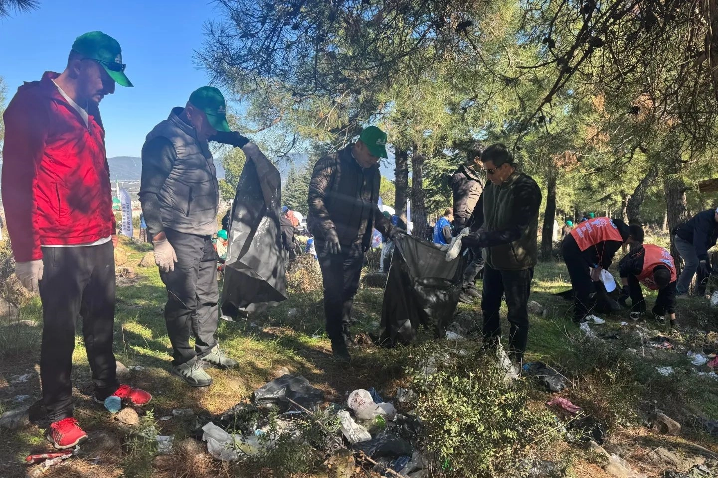 Bursa'da Uludağ'ın eteklerinde gerçekleştirilen temizlikte, torba torba çöp çıktı.