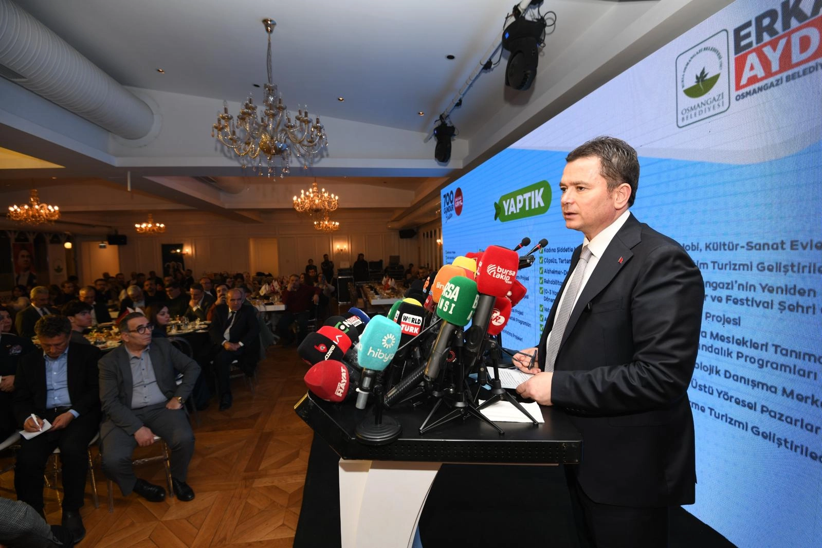 31 Mart 2024’de yapılan yerel seçimlerde Osmangazi Belediye Başkanlığı’na seçilen ve 12 Nisan 2024 tarihinde mazbatasını alarak göreve başlayan Osmangazi Belediye Başkanı Erkan Aydın, “700 Gündür Buradayız Şimdi Daha İleriye” başlığıyla düzenlenen basın toplantısıyla kamuoyunun karşısına çıktı.