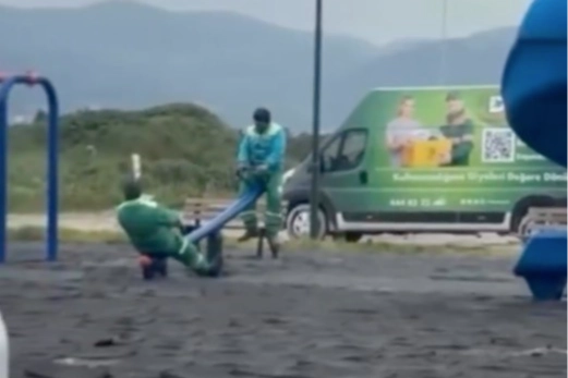 Günlük yoğun mesaileri sırasında kısa bir mola veren işçilerin neşeli halleri, vatandaşlar tarafından takdirle karşılandı. Görüntülerde, temizlik çalışanlarının çocukluklarına dönmüş gibi eğlendikleri anlar dikkat çekti.
