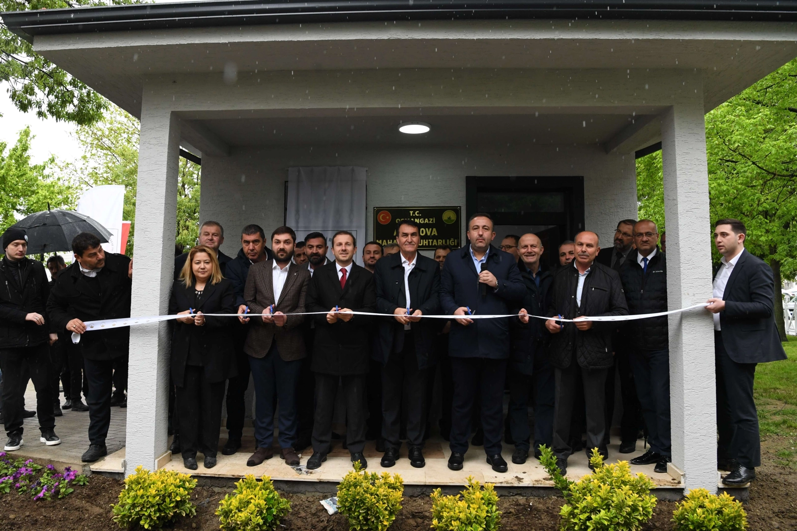 Altınova Mahallesi’ndeki eski muhtarlık binasının yerine yeni bir muhtarlık binası inşa ettiklerini söyleyen Başkan Dündar, “Osmangazi’de hizmet üretirken muhtarlarımızdan büyük güç alıyoruz. Muhtarlarımızın çalışma şartlarını yenilemek için gayret gösteriyoruz. Altınova Mahallemize de yeni bir muhtarlık binası kazandırdık. İlçemize mahallemize hayırlı olsun.” diye konuştu.