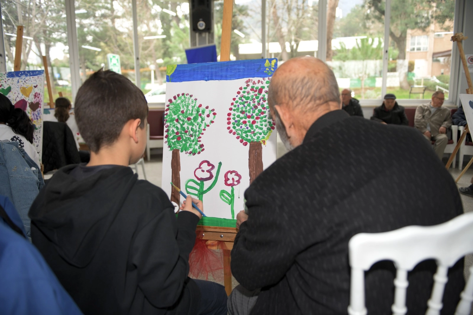 Bursa Büyükşehir Belediyesi Kaplıkaya Huzurevi’ni Yaşlılara Saygı Haftası’ kapsamında ziyaret eden Osmangazi Belediyesi Hüdavendigar Yetenek Evi Resim Sınıfı öğrencileri huzurevinde kalan yaşlılarla ortak etkinlik yaptı. Huzurevi sakinleriyle birlikte ellerine fırçaları alan öğrenciler ortaklaşa karar verdikleri resimleri beraber yaptı. Yaşlılara resim yapma anlamında teknik destek olan öğrenciler onların unutamayacağı keyifli bir gün yaşamasını sağladı. Öğrenciler ve yaşlıların ortak çalışmasıyla ortaya muhteşem resimler çıktı. Düzenlenen etkinliğe Osmangazi Belediye Başkan Yardımcısı Mutlu Esendemir’de öğrencilerle birlikte katıldı.