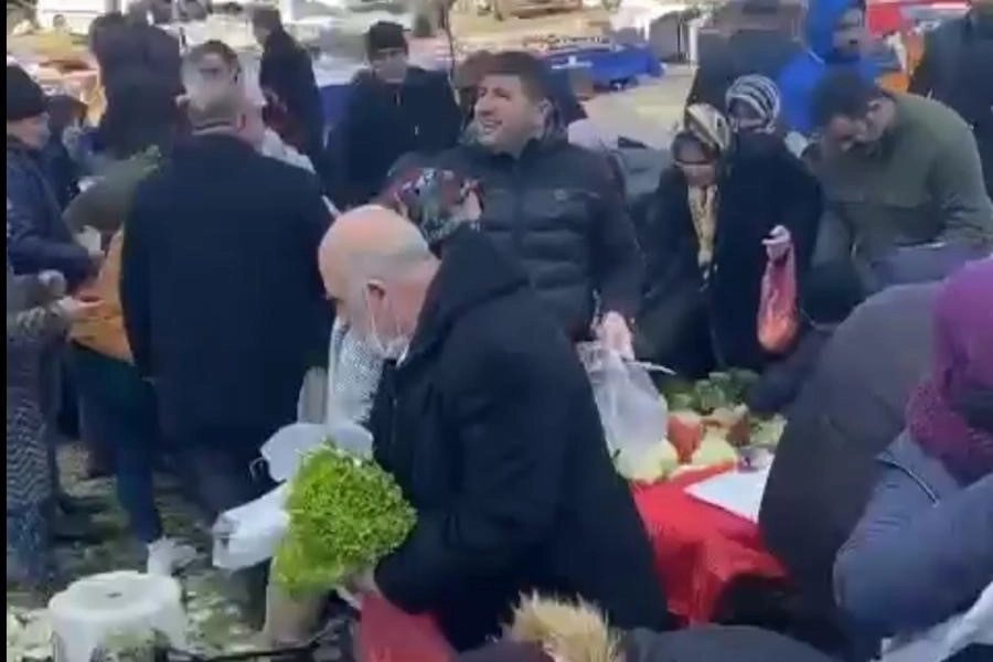 Tezgah sahibinden vatandaşlara dağıtmasını istedi. Tezgah sahibi, tezgahtaki malları vatandaşlara dağıttı. O anlar saniye saniye kameraya yansıdı.