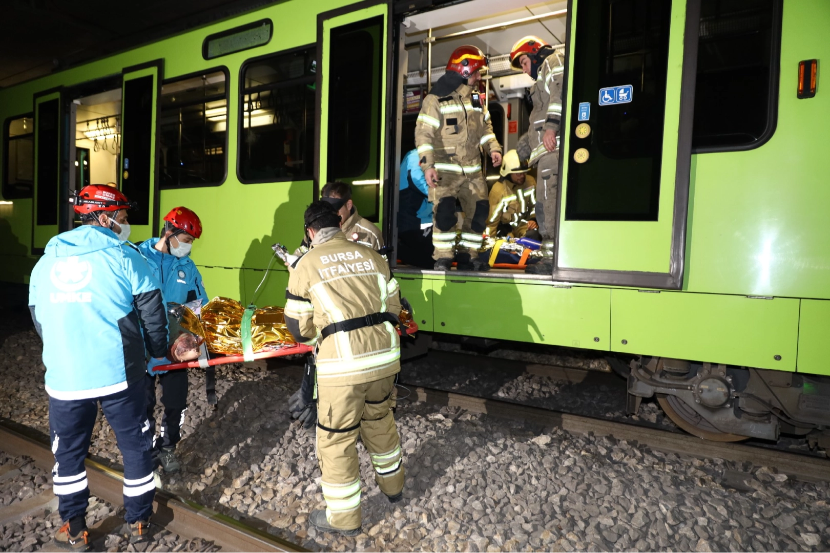 13 ülkeden 80 kişinin üzerinde yabancı uzman, 20 kurum katılımı, HAVELSAN ekibi, UMKE, Bursa Büyükşehir Belediyesi İtfaiye ve Akıllı Şehircilik Dairesi Başkanlıkları ile Burulaş ekiplerinin de katılımıyla 200’ü aşkın personelle kimyasal alan, yangın ve tren kazası tatbikatları gerçekleştirildi. Küçükbalıklı Afet Koordinasyon Merkezi’nde gerçekleştirilen kimyasal alan ve yangın tatbikatları gerçeği aratmazken, tren kazası tatbikatı ise adeta nefesleri kesti. Senaryo gereği metro, Nilüfer İstasyonu ile Odunluk İstasyonu arasındaki tünelden geçerken, deprem meydana geldi ve metro vagonu raylardan çıktı. Metrodaki yolculardan 21’i yaralanırken, olay yerine gelen ekipler, olaya son teknolojik donanımlarla müdahale etti. Müdahale ekipleri giyilebilir teknolojilerle donatılırken, ilk olarak olay yerine bir drone yönlendirildi. Olay yeri ve yaralı tespitleri öncelikle drone ile yapıldı. Bu tespitin ardından yürüyebilecek durumdaki yolcular, raylar üzerinde çıkış noktasına yönlendirilirken, müdahale ekipleri de vagona girerek içerideki yaralılarda durum tespiti yaptı. Bu tespit ekiplerin özel gözlükleri sayesinde kriz merkezinden de anlık takip edildi. Bu gözlem ve tespitlerin ardından da devreye UMKE ekipleri girdi. Yaralılara ilk müdahaleyi vagon içinde yapan ekipler, termal battaniyeye sardıkları yaralıları sedye ile raylar üzerinde istasyona kadar taşıdı. Yaklaşık 3 saat süren tatbikat, başarıyla tamamlandı.