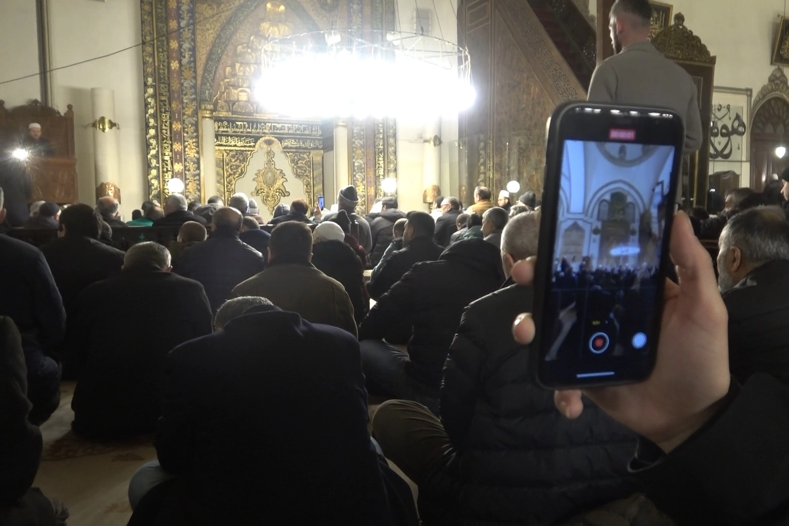 Camiye akın eden vatandaşlar, kılınan yatsı namazı sonrası okunan dualara ‘amin’ dedi.