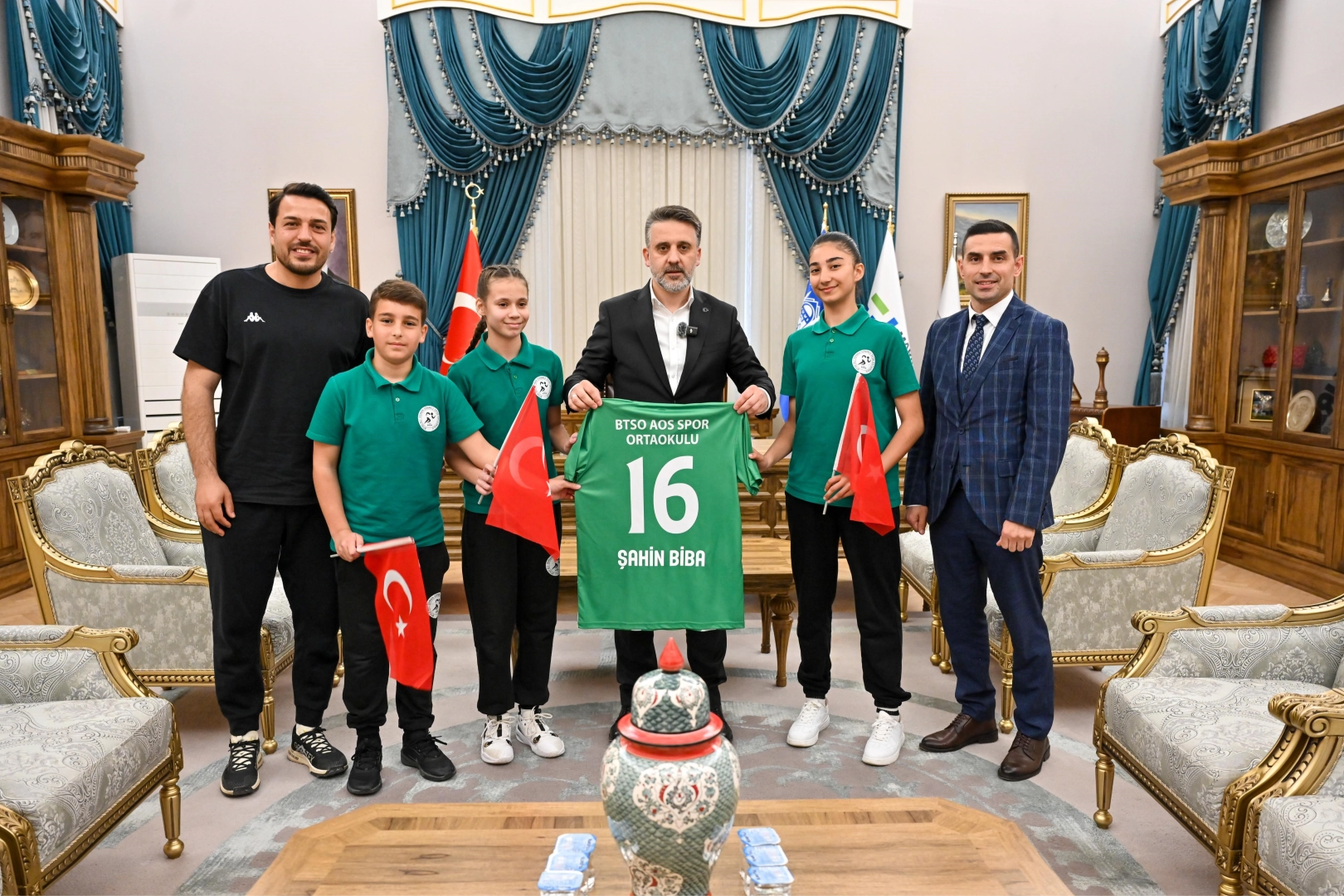Bursa Büyükşehir Belediye Başkan Vekili Şahin Biba, 23 Nisan’da koltuğunu spor ortaokulu öğrencilerine devretti. Minik başkanlar, okullarına spor yatırımı istedi.