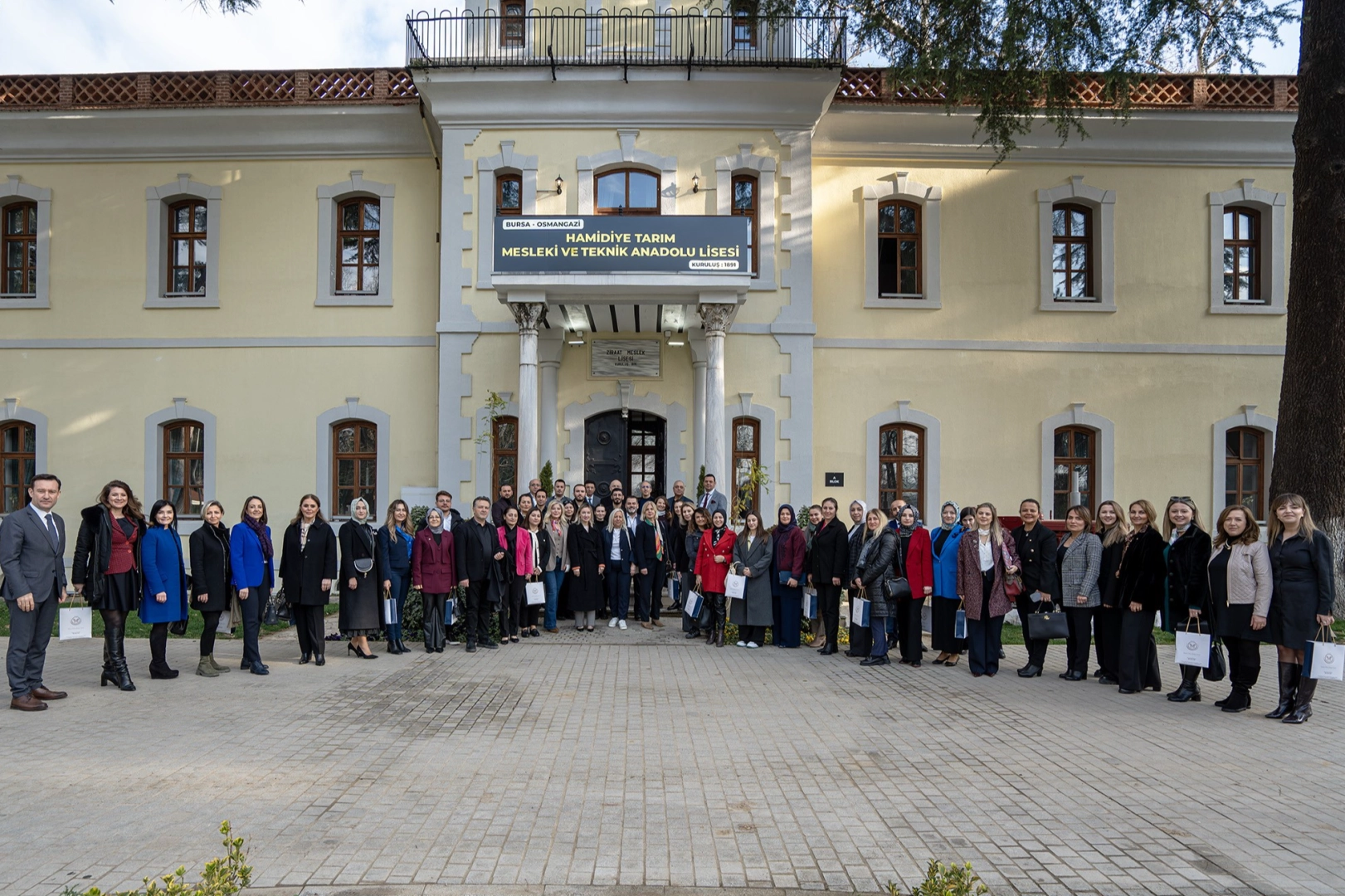 Bursa Ticaret Borsası’nın proje okulu Hamidiye Tarım Mesleki ve Teknik Anadolu Lisesi’nde düzenlenen imza törenine, TOBB Bursa Kadın Girişimciler Kurulu İcra Komitesi Üyeleri, projeye destek veren firma temsilcileri ile projede paydaş olarak yer alan İŞKUR Bursa İl Müdürlüğü, Bursa Büyükşehir Belediyesi Bursa İstihdam ve Kariyer Ofisi, Gürsu Belediyesi Kollektif Kariyer Merkezi yetkilileri katıldı.