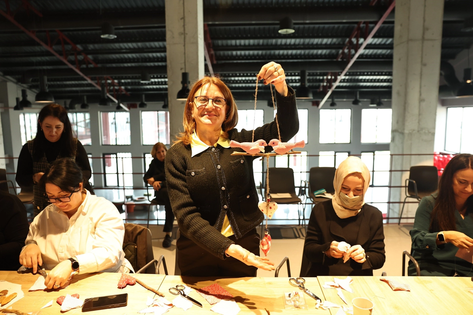 Pancar Deposu’nda gerçekleştirilen atölyeye katılan kadınlar, Gülçin Çalık eğitmenliğinde kapı süsleri tasarladı. Katılımcılar, el emeği ürünlerine son şeklini vermek için özenle çalışırken, aynı zamanda keyifli vakit geçirdi.