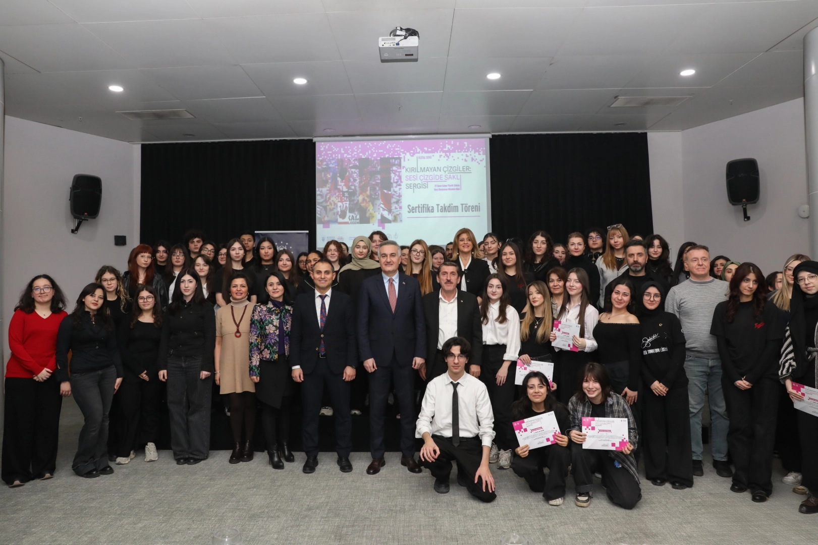 Bursa Büyükşehir Belediyesi tarafından düzenlenen ‘Kırılmayan Çizgiler: Sesi Çizgide Saklı’ dijital afiş sergisine katkı sunan öğrencilere sertifikaları verildi.