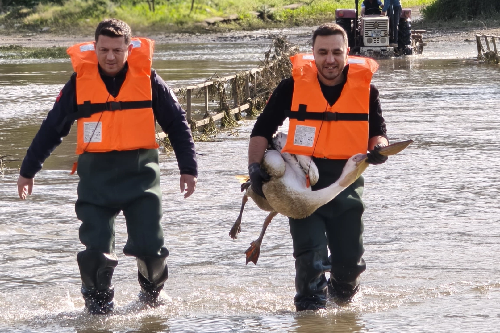 Kısa sürede bölgeye ulaşan ekipler, suya uygun özel kıyafetlerini ve can yeleklerini giyerek kurtarma çalışması başlattı. Zorlu şartlarda gerçekleştirilen çalışmada, çalılıklar arasında sıkıştığı belirlenen yaralı pelikan bulunduğu yerden dikkatli bir şekilde çıkarıldı. Kurtarılan pelikan, tedavi altına alınmak üzere İnegöl Belediyesi Sahipsiz Hayvan Bakım ve Tedavi Merkezi'ne götürüldü. Pelikanın sağlık durumunun yapılacak kontrollerin ardından netlik kazanacağı öğrenildi.
