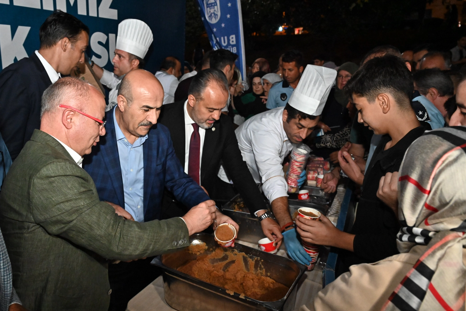 Konuşmaların ardından anma törenine katılan vatandaşlara helva ikram eden Büyükşehir Belediye Başkanı Alinur Aktaş, gece de Ulu Cami’de düzenlenen Mevlid Kandili programına katıldı. Vatandaşlar Ulu Cami başta olmak üzere özellikle selatin camilere akın ederken, Bursa Büyükşehir Belediyesi tarafından vatandaşlara cami çıkışlarında helva ikram edildi. Bursa Büyükşehir Belediye Başkanı Alinur Aktaş da beraberindeki Bursa Valisi Mahmut Demirtaş, Bursa Milletvekili Mustafa Yavuz ve AK Parti İl Başkanı Davut Gürkan ile Orhangazi Parkı’nda vatandaşlara helva ikram etti.