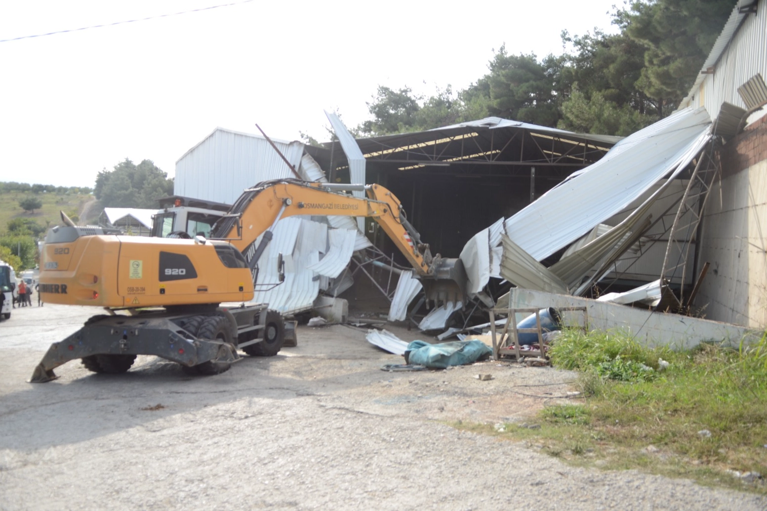 Osmangazi Belediyesi, Ovaakça Santral Mahallesi’nde tarım arazisi üzerine inşa edilen kaçak fabrikaları yıktı.