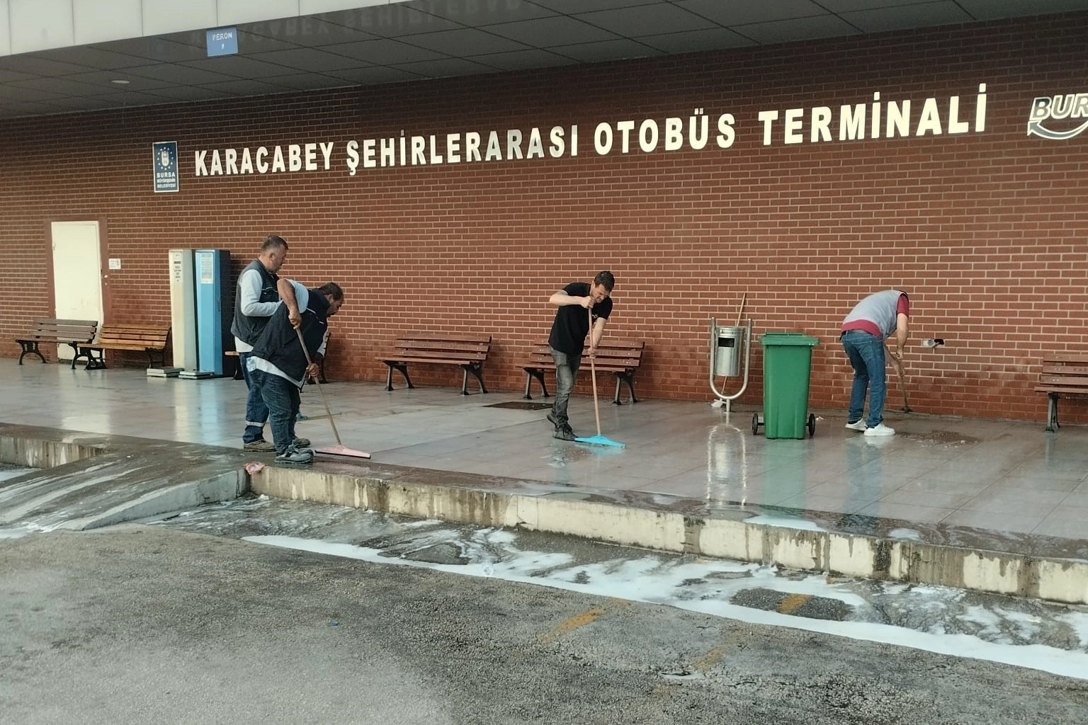 Temizlik çalışmaları kapsamında terminaldeki kirli ve kötü kokulara neden olabilecek alanlar dezenfekte edildi; zemindeki lekeler, toz ve atıklar basınçlı suyla temizlendi. Ayrıca, çevredeki çöp kutuları ve bekleme alanları da hijyenik hale getirildi.