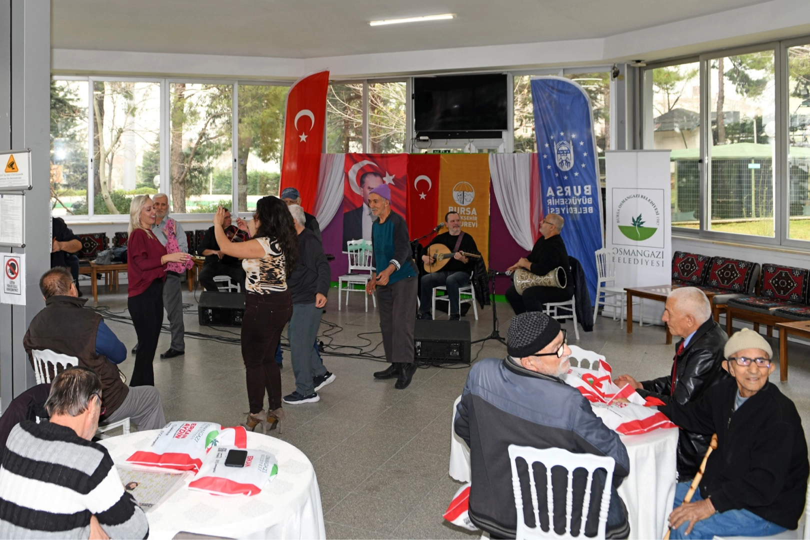 Verdiği konserler ile Bursalı sanatseverleri musikiyle buluşturan Osmangazi Belediyesi Türk Sanat Müziği Korosu, şarkılarını bu kez baş tacı yaşlılarımız için söyledi. Huzurevi sakinleri için düzenlenen moral konserinde, Şef Rüştü Şentürk yönetimindeki koro üyeleri, Türk Sanat Müziği’nin birbirinden seçkin eserlerini seslendirdi. Koro üyelerinin seslendirdiği eserlere huzurevi sakinleri de eşlik etti. Hareketli şarkılarda dans eden huzurevi sakinleri, gönüllerince eğlenmenin mutluluğunu yaşadı. Konserin sona ermesinin ardından Osmangazi Belediye Başkan Yardımcısı Mutlu Esendemir, huzurevi sakinleri ile sohbet ederek hal ve hatırlarını sordu. Esendemir, huzurevi sakinlerine çeşitli hediyeler verdi.