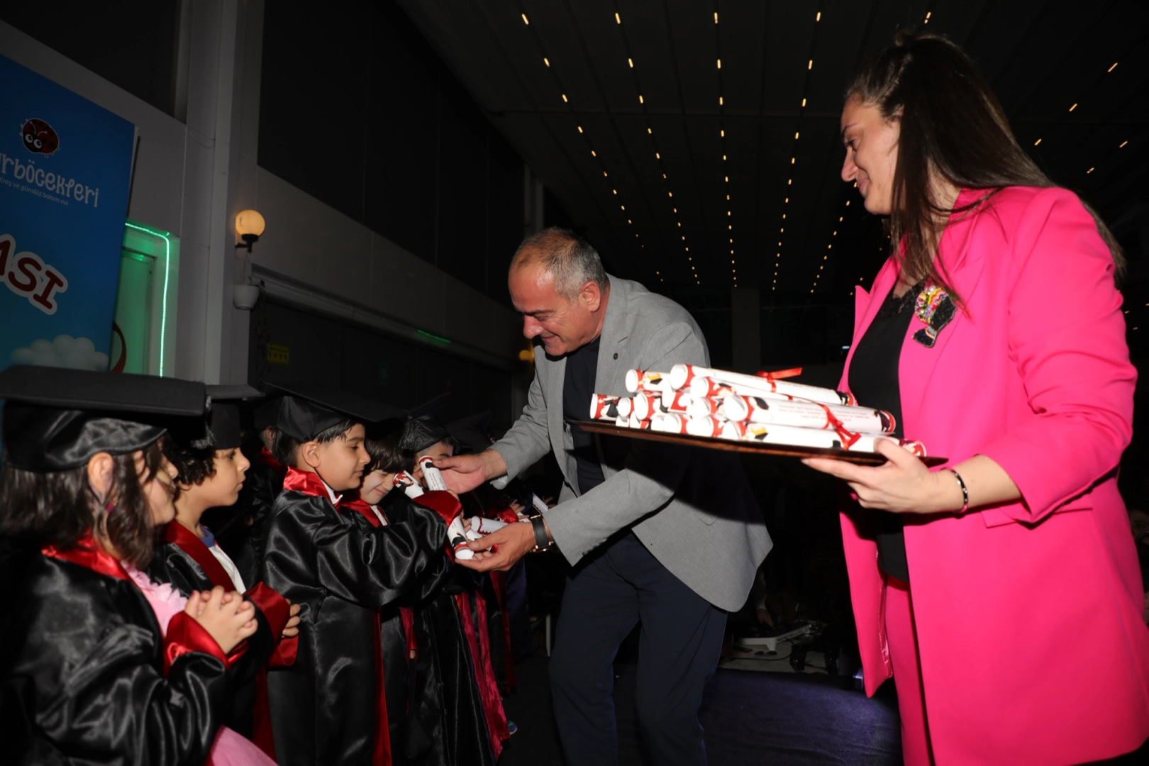 İllüzyon gösterisi ve pamuk şeker ikramıyla eğlencenin doruğa çıktığı program, çocukların birbirinden güzel gösteriyle devam etti. Gösterilerin ardından mezun olup ilkokula başlayacak 35 öğrenciye belgeleri Gemlik Belediye Başkanı Mehmet Uğur Sertaslan tarafından verildi. Keplerini atıp mezuniyet pastasını kesen minikler, doyasıya eğlendi.