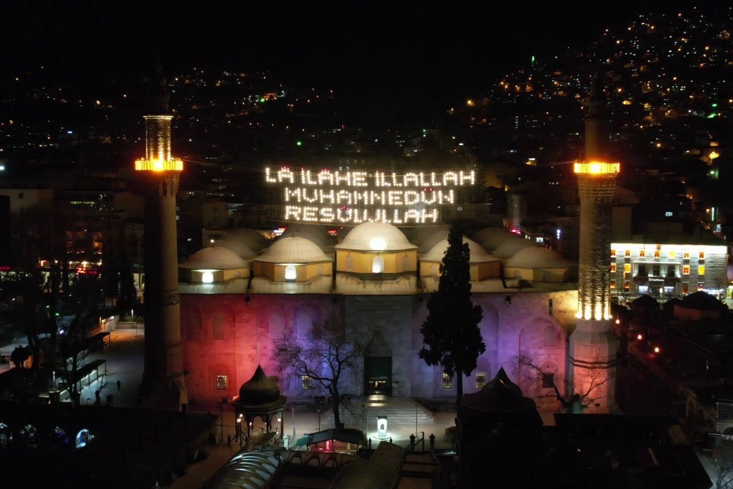 Ramazan ayının ikinci yarısı için Kültür ve Turizm Bakanlığı Vakıflar Genel Müdürlüğü İstanbul'daki mahya atölyesinde hazırlanarak Bursa'ya getirilen Kelime-i Tevhidi ‘La İlahe İllallah Muhammedün Resullullah' ustalarca caminin minareleri arasına asılmaya başlandı.