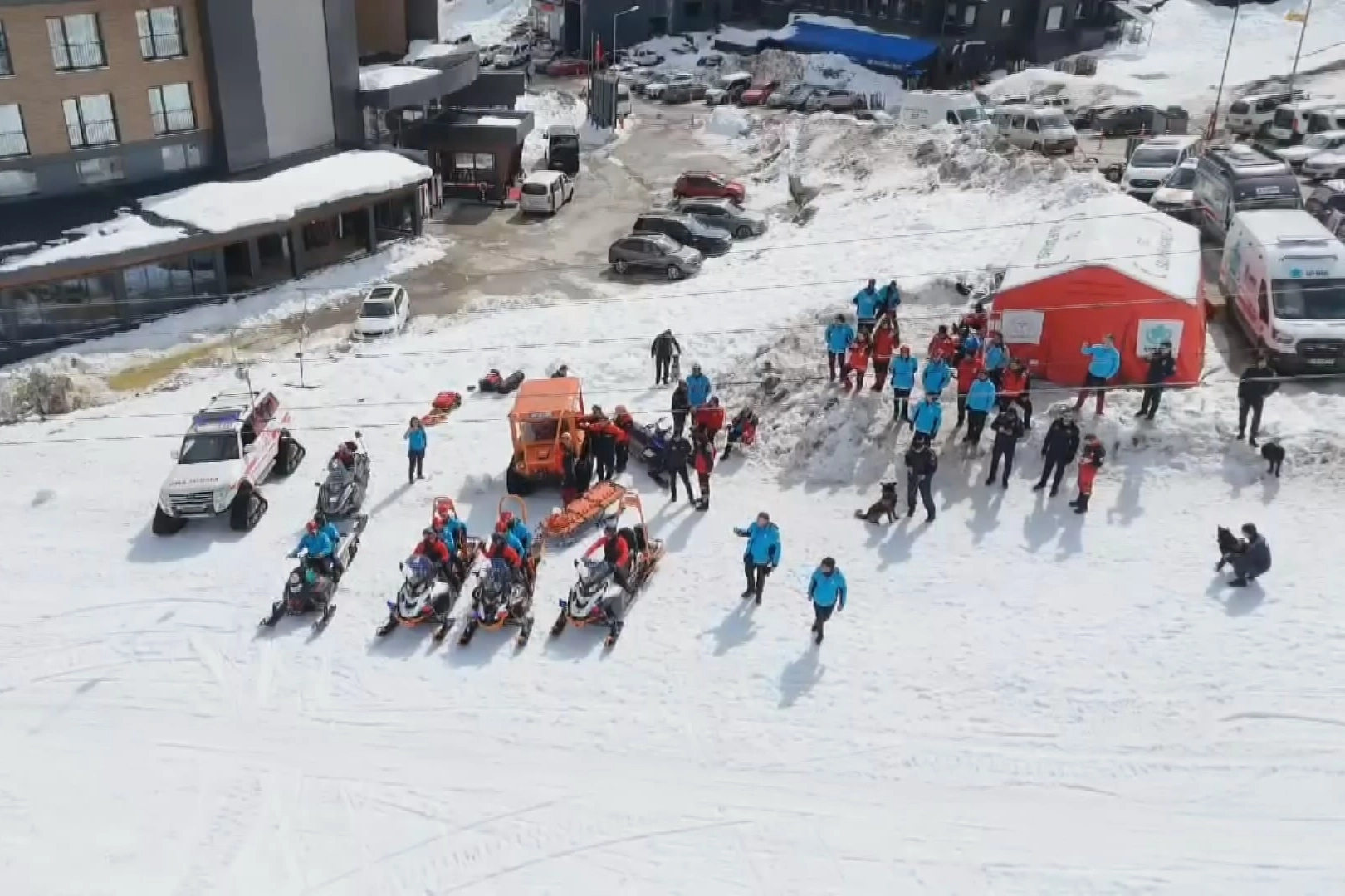 Daha sonra paletli ambulanslara taşınarak 112 noktasında bekleyen diğer ambulanslarla Bursa'daki hastanelere ulaştırıldı. Tatbikat, haber merkezine gelen anons ile başladı. Anons sonrası ekipler harekete geçerek kar motorları ile yaralı vatandaşın yanına ulaştı. Nefes kesen tatbikatta ekipler, yaralıyı kurtarmak için zamanla yarıştı.