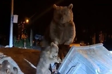 Türkiye’nin önemli turizm merkezlerinden biri olan Uludağ’da aç kalan ayı ailesi, çöp konteynerlerini karıştırarak yiyecek aradı. Türkiye’nin önemli kış turizmi merkezlerinden Uludağ’da, aç kalan bir ayı ailesi ormandan Sarıalan bölgesine indi. Yavrularıyla birlikte yiyecek arayan ayılar, günübirlikçilerin bıraktığı çöplerin bulunduğu çöp konteynerlerini karıştırdı. Bölgede bulunan bir vatandaş, aç kalan ayı ailesinin yiyecek arama anlarını cep telefonu kamerasıyla kaydetti.