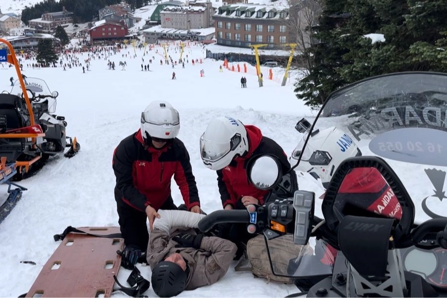 Hazırlık esnasında 112'ye gelen ihbarla harekete geçen ekipler, kayak yapan bir vatandaşın mahsur kalması üzerine hızla bölgeye intikal etti. Kolunda kırık oluşan ve düştüğü yerde mahsur kalan bir vatandaşın yardımına kar motorlarıyla yetişen ekipler, ilk müdahale sonrası yaralıyı sağlık ekiplerine sevk etti. O anlar kameraya yansırken, jandarma ekiplerinin hızlı müdahalesi vatandaşlardan da tam puan aldı.