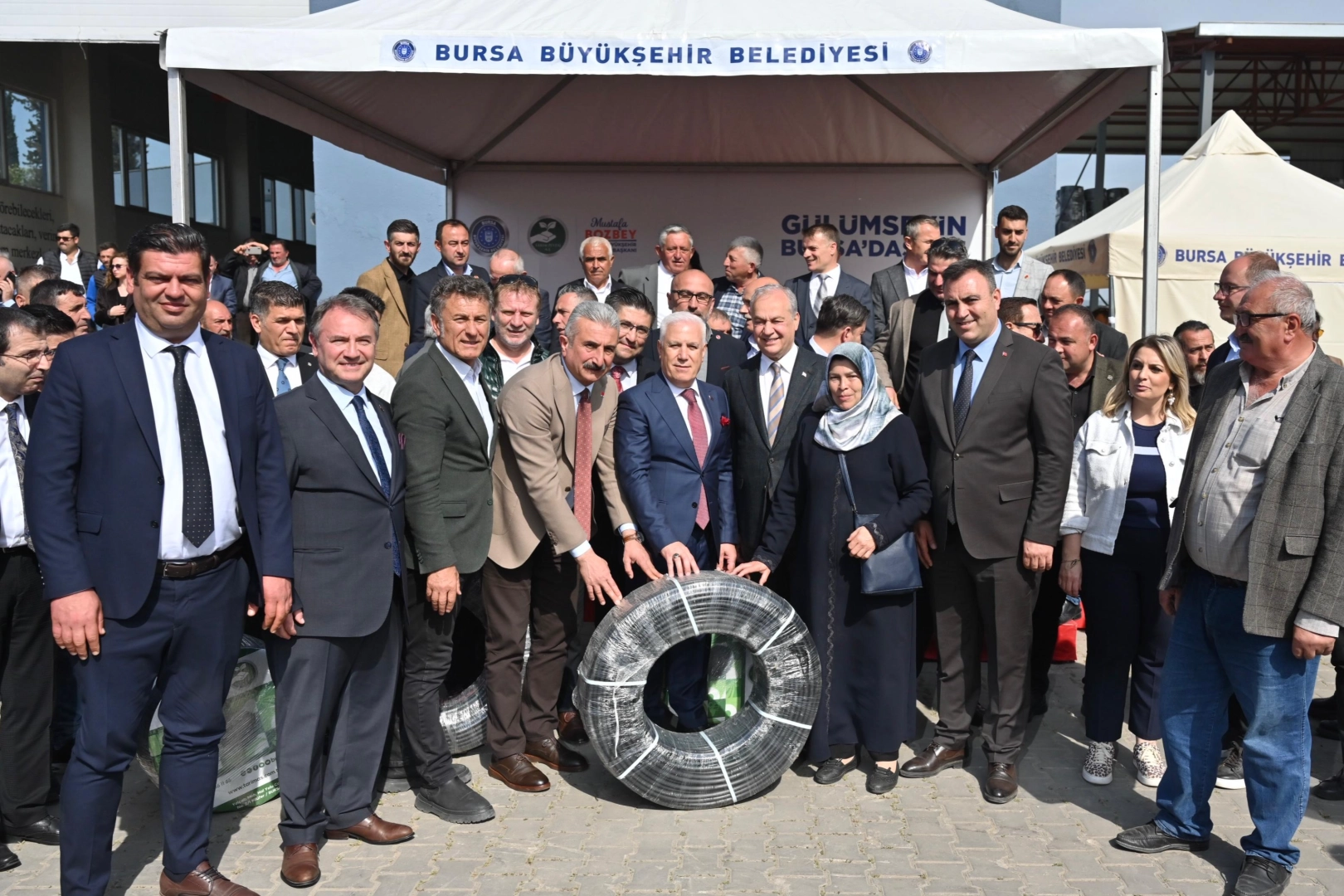 Çiftçiye olan desteklerini artırarak sürdüreceklerini belirten Başkan Mustafa Bozbey, yakın zamanda sıvı gübreyi de üreticilerle buluşturacaklarını açıklayarak mazot desteği için de hazırlık yaptıklarını söyledi. Bursa’da her alanda çiftçiyi destekleyen Büyükşehir Belediyesi, kentin tarımsal geleceğini şekillendirmeye, suyun verimli kullanımını sağlayarak bereketli topraklara hayat katmaya devam ediyor. Bursa Büyükşehir Belediyesi Kırsal Hizmetler Dairesi Başkanlığı ile Tarım Peyzaj AŞ iş birliğinde yürütülen ‘Hibeli Damla Sulama Boru Projesi’ kapsamında toplam 10 bini aşkın sulama borusu, düzenlenen törenle yaklaşık 1500 çiftçiye teslim edildi. Mustafakemalpaşa Ovaazatlı Mahallesi’ndeki Damla Sulama Boru Üretim Tesisi’nde düzenlenen programa, Büyükşehir Belediye Başkanı Mustafa Bozbey, CHP İl Başkanı Nihat Yeşiltaş, CHP Bursa Milletvekili Orhan Sarıbal, Büyükşehir Belediyesi Genel Sekreteri Doç. Dr. Ergül Halisçelik, Mustafakemalpaşa Belediye Başkanı Şükrü Erdem, Büyükşehir Belediyesi Genel Sekreter Yardımcısı Mehmet Tözün Bingöl, Tarım Peyzaj AŞ Yönetim Kurulu Başkanı Mehmet Aydın Saldız, Tarım Peyzaj AŞ Genel Müdürü Sedat Akar, Büyükşehir Belediyesi yöneticileri, meclis üyeleri, ziraat odalarının yöneticileri, muhtarlar ve üreticiler katıldı.