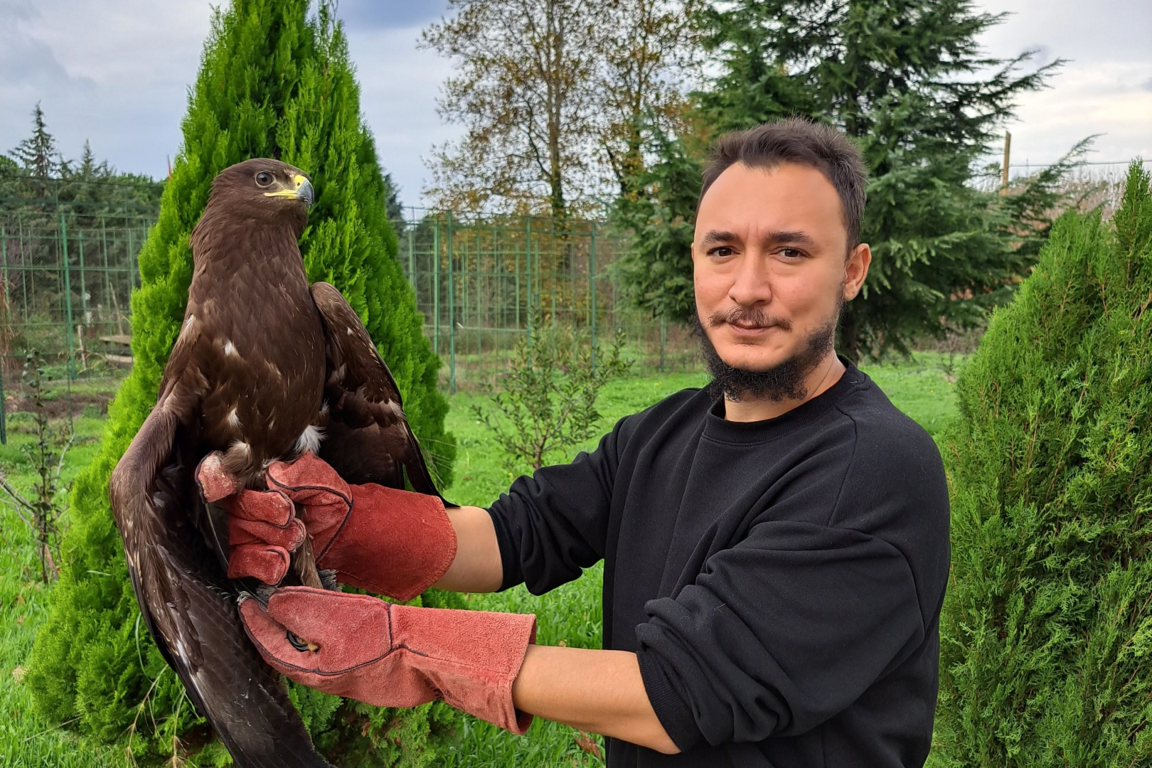 Daha sonra kendine gelen kartalı Karacabey Ovakorusu Rehabilitasyon Merkezi personelleri, ayağına bilezik takarak doğaya saldı. O anlar ölümsüzleştirildi.