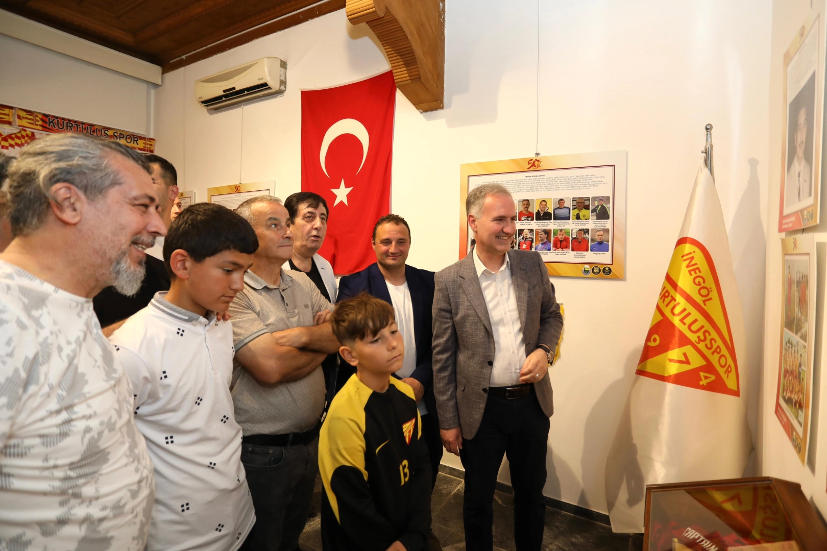 Kurtuluşspor Başkanı Semih Yavuz ve eğitimci antrenör Özden Suvat, kulüp tarihini anlatan özel serginin hazırlanması için sundukları katkı ve kulüplerin daha da güçlenmesi adına verdikleri destekten dolayı İnegöl Belediye Başkanı Alper Taban’a teşekkürlerini iletti.