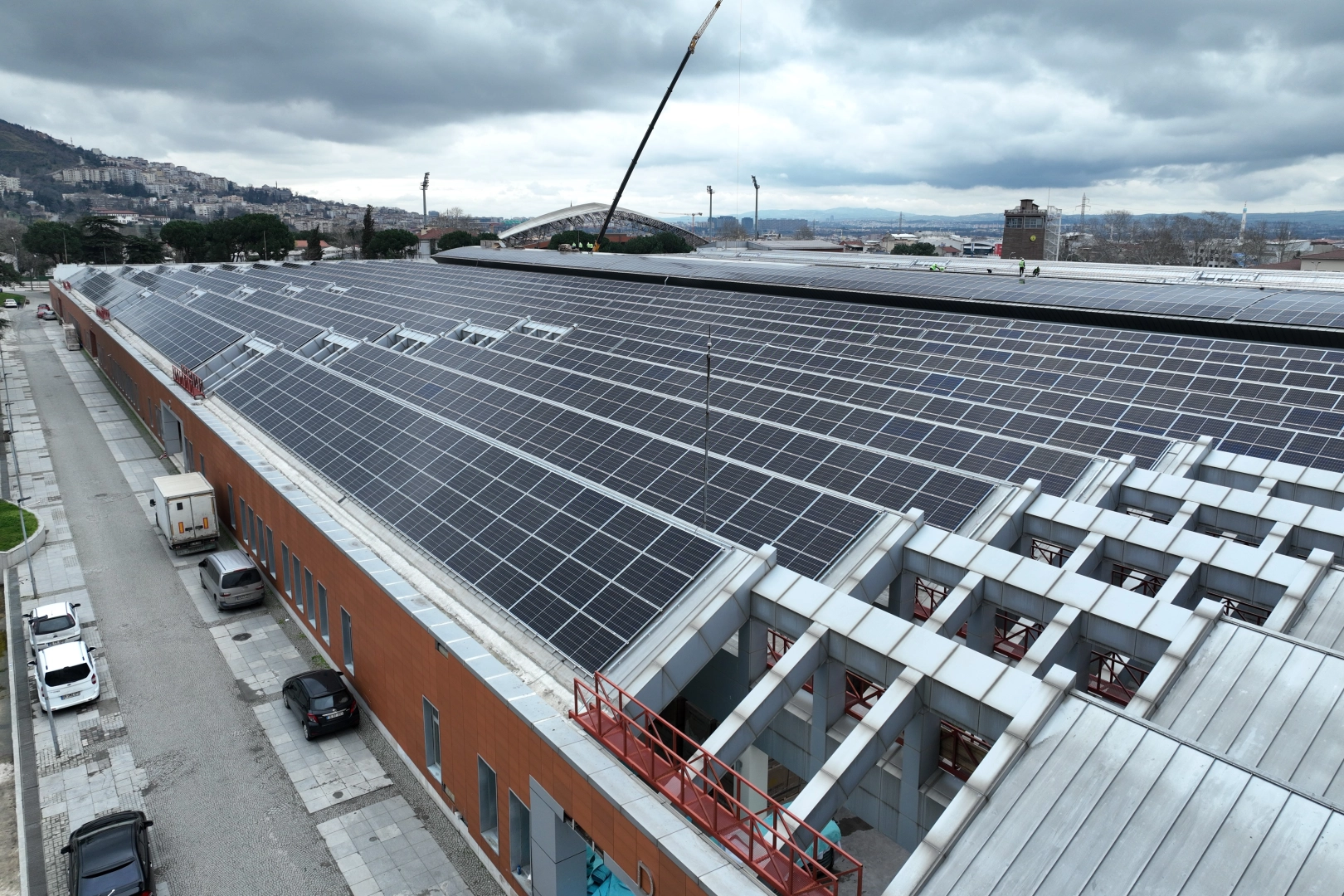 Bursa’da daha sağlıklı bir gelecek için yenilenebilir enerji yatırımlarına sürdüren Büyükşehir Belediyesi, Merinos Atatürk Kongre ve Kültür Merkezi binası çatısını güneş panelleri ile donatıyor. 1