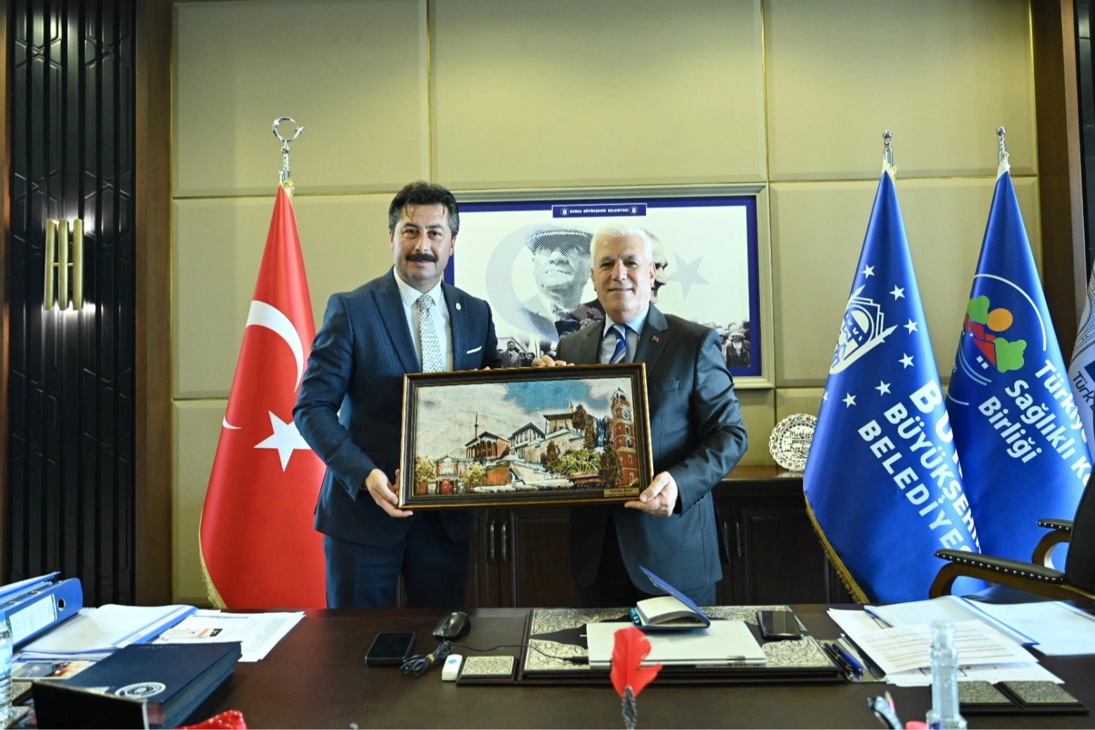Yenişehir Belediye Başkanı Ercan Özel, Bursa Büyükşehir Belediye Başkanı Mustafa Bozbey’i makamında ziyaret etti. Başkan Bozbey, Ercan Özel’i 31 Mart’ta kazandığı seçim nedeniyle kutlarken başarı dileklerini iletti. Büyükşehir Belediyesi’nin Yenişehir’deki çalışmaları hakkında da görüş alışverişinde bulunan Ercan Özel ile Mustafa Bozbey, ilçede yapılması planlanan projeler hakkında da ortak çalışma noktasında görüş birliğine vardı. Konu hakkında açıklama yapan Başkan Özel, “Bursa Büyükşehir Belediyesi ile birlikte Yenişehir’de yapılması planlanan projeler hakkında fikir alışverişinde bulunduk. Eksikler konusunda bilgilendirme yaptık. Bölgemizin planlı gelişimi için el ele vererek ilçemizi hep birlikte hak ettiği değere kavuşturacağız” dedi.