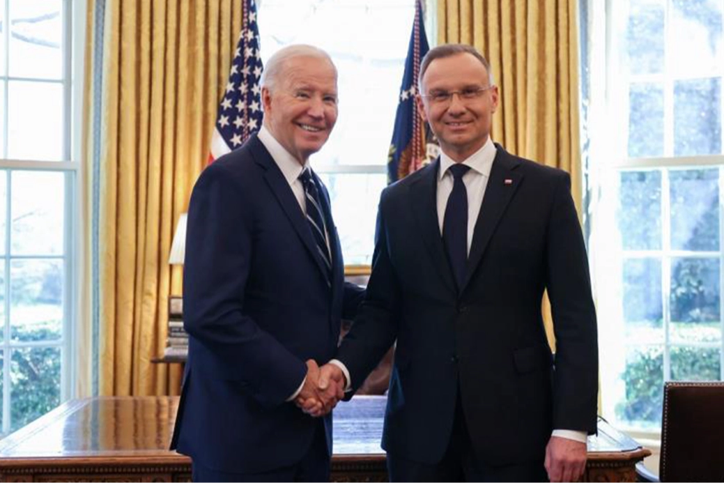 ABD Başkanı Joe Biden'ın daveti üzerine Washington'a gelen Polonya Cumhurbaşkanı Andrzej Duda ve Polonya Başbakanı Donald Tusk Beyaz Saray'da Biden ile buluştu. Polonya'nın NATO'ya üye oluşunun 25. yıl dönümüne denk gelen görüşme öncesi liderler basına açıklamalarda bulundu. ABD'nin Polonya'ya bağlılığının kati olduğunu, müttefiklerden herhangi birine saldırının tüm müttefiklere yapılmış olacağını belirten ABD Başkanı Joe Biden, Rusya'nın Ukrayna saldırısıyla yetinmeyeceğini Polonyalıların da bildiğini söyledi. Biden, "Biz hepimiz aynı düşünmek zorundayız, bugün burada yapacağımız konuşmaları sabırsızlıkla bekliyorum" şeklinde konuştu.