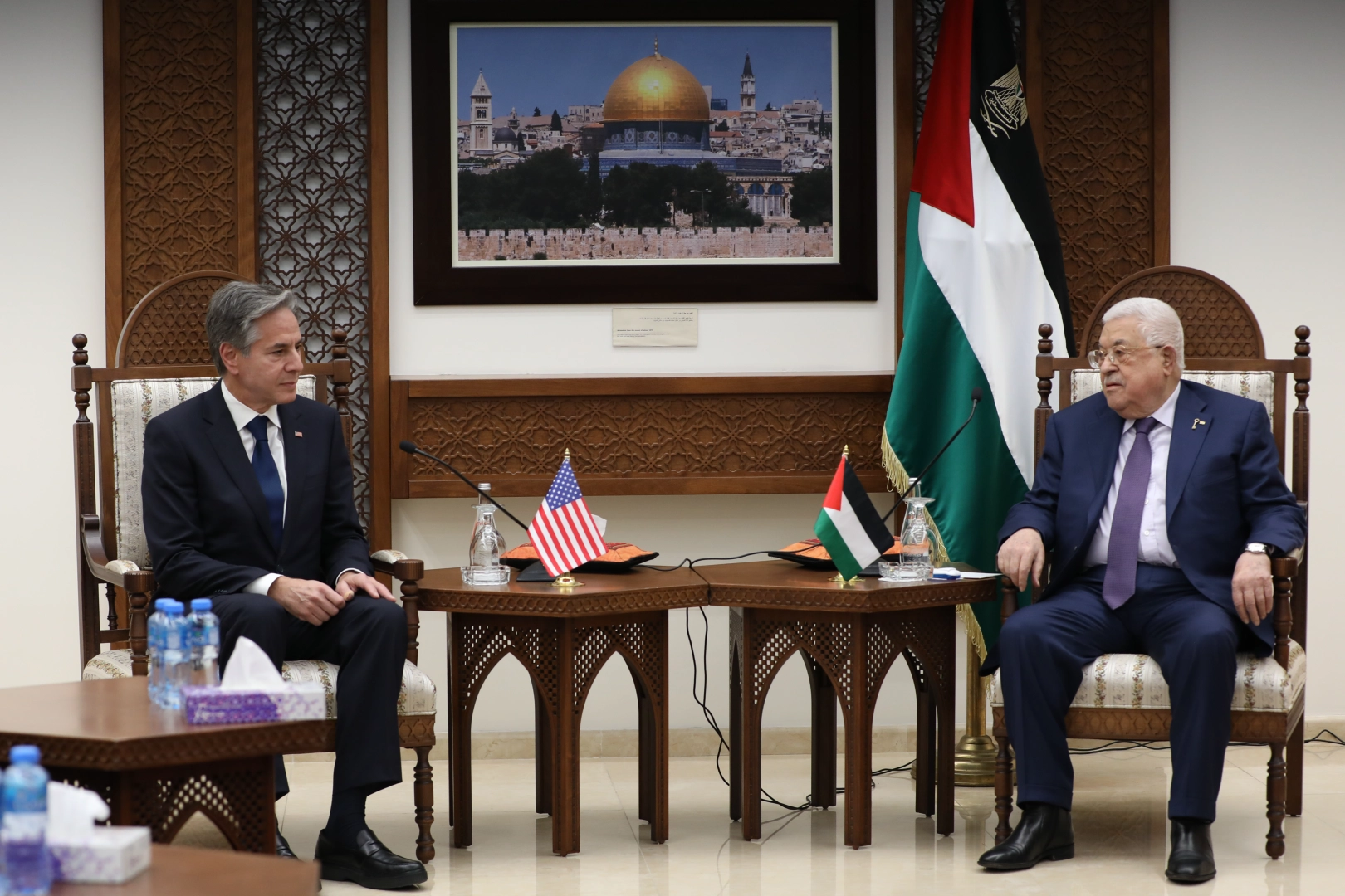 ABD Dışişleri Bakanı Antony Blinken, Orta Doğu liderleriyle görüşmelerini sürdürüyor. Blinken, bölgedeki temasları kapsamında bugün İsrail işgalindeki Batı Şeria’ya bağlı Ramallah şehrinde Filistin Devlet Başkanı Mahmut Abbas ile görüştü. İsrail saldırılarının başladığı 7 Ekim’den bu yana ikinci kez görüşen ikili, ilk kez Batı Şeria’da bir araya geldi. Görüşmeye ilişkin resmi açıklama henüz yapılmadı.