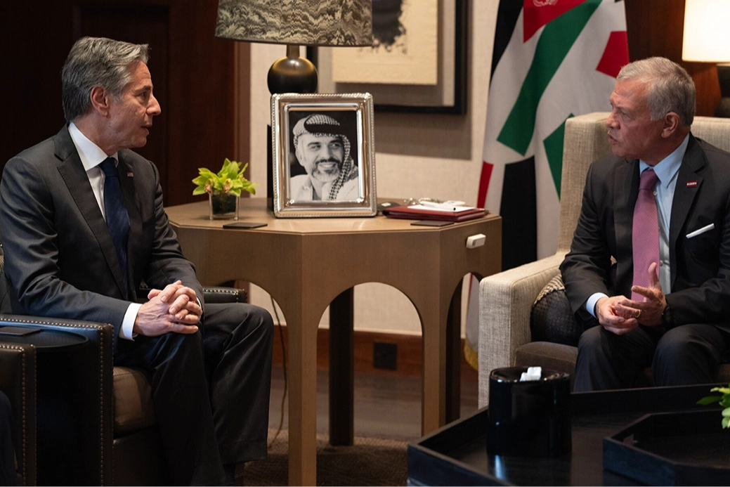 Suudi Arabistan’daki temaslarını tamamlayan ABD Dışişleri Bakanı Antony Blinken, Ürdün’e geldi. Blinken, Ürdün Kralı 2. Abdullah ile görüştü. ABD Dışişleri Bakanlığı tarafından yapılan açıklamada, görüşmede, İsrail ve Hamas arasında devam eden ateşkes müzakerelerinin, İsrail ve Filistin ihtilafında iki devletli çözümde dahil olmak üzere bölgede kalıcı barışın sağlanmasına yönelik devam eden diplomatik çabaların ve Ürdün'den Gazze'ye kara yoluyla acil ihtiyaç duyulan ilave yardımların ulaştırılmasına yönelik ortak çabaların ele alındığı aktarıldı. Blinken, Kral Abdullah’ın yanı sıra Ürdün Dışişleri Bakanı Ayman Safadi ile de bir araya geldi. Blinken, yarın İsrail’i ziyaret edecek