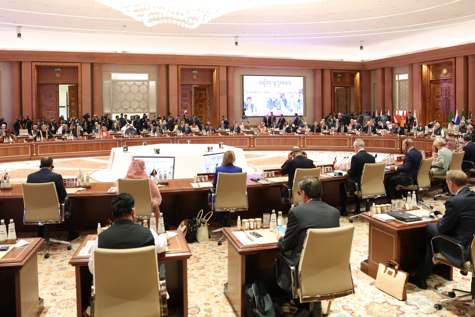Hindistan'ın ev sahipliğinde bu yıl "Tek Yeryüzü, Tek Aile, Tek Gelecek" ana temasıyla düzenlenen 18'inci G20 Liderler Zirvesi, Cumhurbaşkanı Recep Tayyip Erdoğan'ın da katıldığı resmi karşılama töreniyle başladı. Hindistan Başbakanı Narendra Modi, Bharat Mandapam Uluslararası Fuar ve Kongre Merkezi'ndeki törende zirveye katılan liderleri tek tek karşılayarak fotoğraf çektirdi. Tören kapsamında "Liderler Alanı"nda bir araya gelen liderler, daha sonra kongre merkezine giriş yaptı.