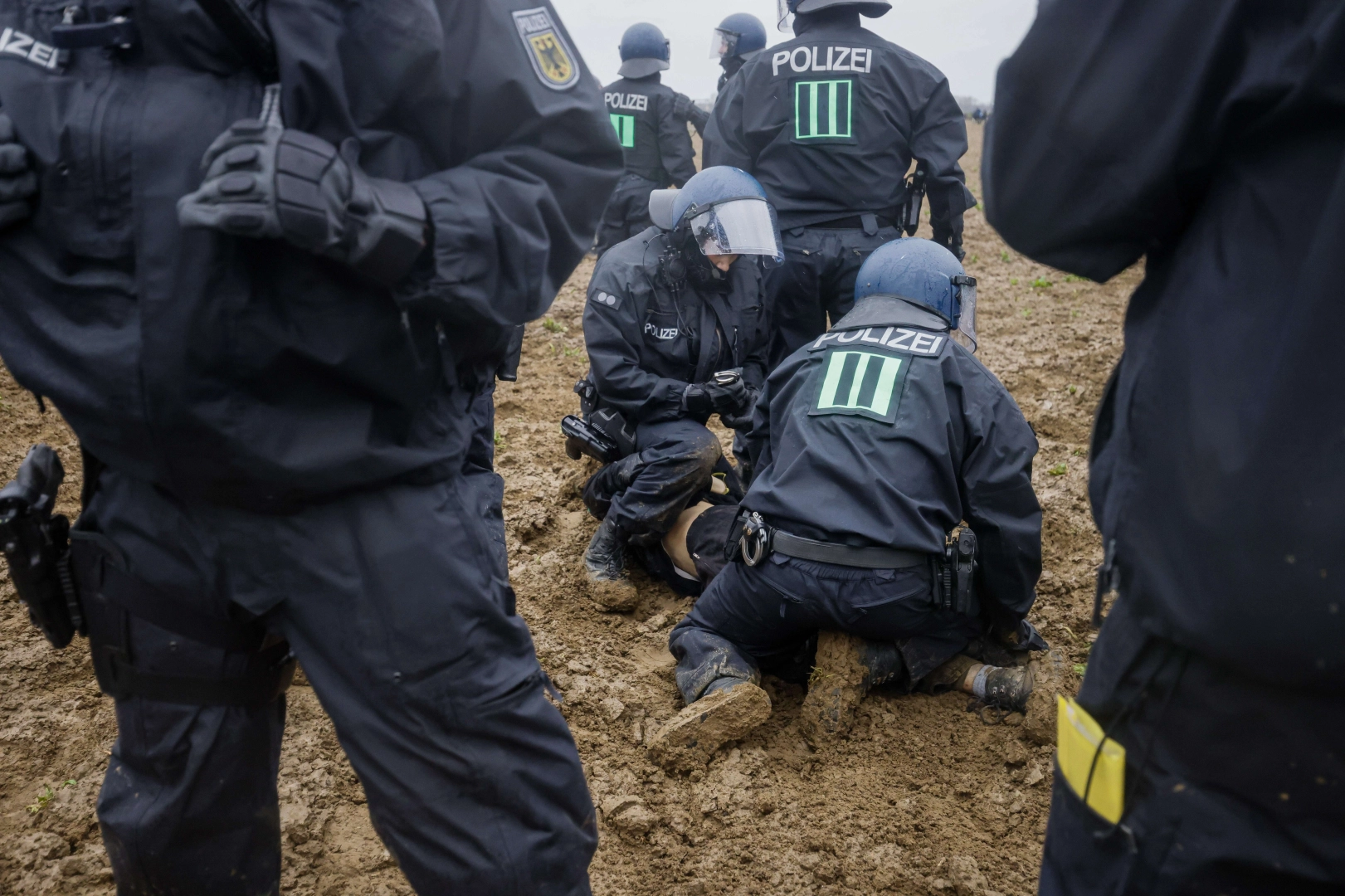 Protestocuların büyük kısmı köyden tahliye edilirken, Alman polisinin 14 Ocak’ta protestoculara yaptığı müdahale sırasında çamura saplanması sosyal medyada alay konusu oldu. Polislerin çamura saplanmasının fırsat bilen göstericiler, polise çamur atarak karşılık verirken, polisler ise çamura saplanan arkadaşlarını kurtarmaya çalıştı.
