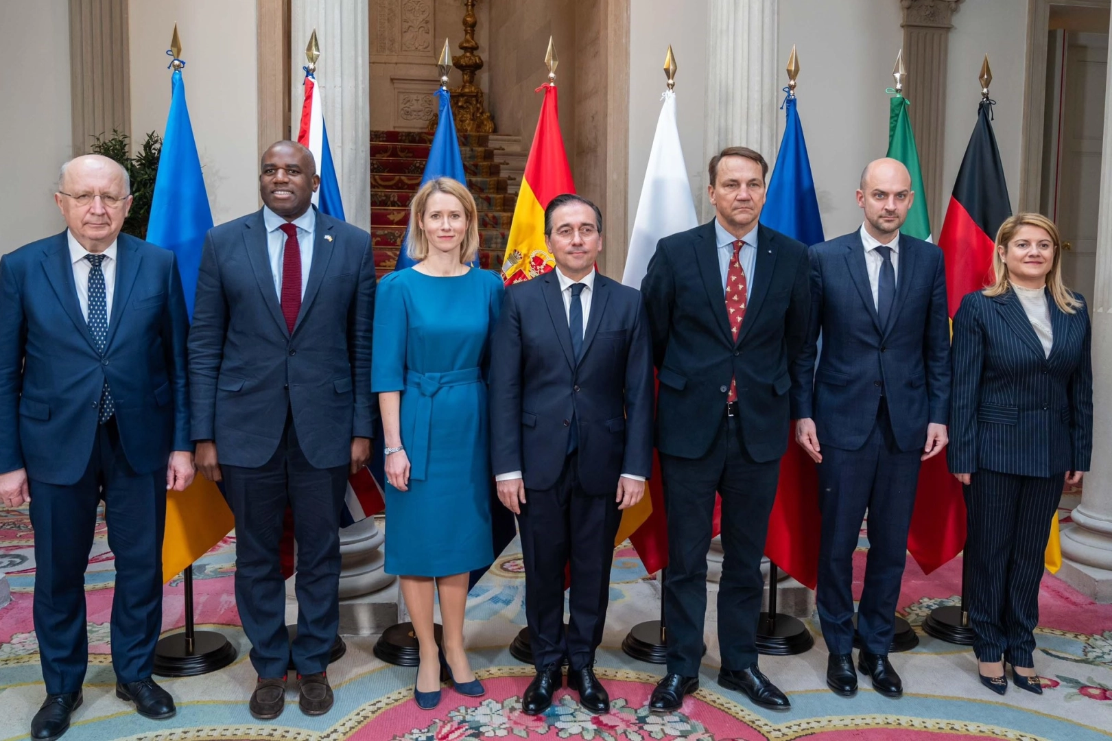 İspanya, Almanya, Fransa, İtalya, İngiltere ve Polonya Dışişleri Bakanları ile Avrupa Birliği'nin en üst düzey diplomatı ve Savunma Komiseri tarafından yayımlanan ortak açıklamada, "Yeni yaptırımların kabul edilmesi de dahil olmak üzere mevcut tüm araçları kullanarak Rusya üzerinde daha fazla baskı uygulamaya hazırız" denildi. İspanya Dışişleri Bakanı Jose Manuel Albares, Fransa Dışişleri Bakanı Jean-Noel Barrot, Polonya Dışişleri Bakanı Radoslaw Sikorski, İngiltere Dışişleri Bakanı David Lammy, İtalya Dışişleri Bakanlığı Müsteşarı Maria Tripodi, Savunma ve Uzaydan Sorumlu Avrupa Komisyonu Üyesi Andrius Kubilius ve AB Dış İlişkiler ve Güvenlik Politikası Yüksek Temsilcisi ve Avrupa Komisyonu Başkan Yardımcısı Kaja Kallas, Madrid’de bir araya geldi. Toplantının ardından İspanya, Almanya, Fransa, İtalya, İngiltere, Polonya ile Kallas ve Kubilius tarafından yayımlanan ortak açıklamada, Ukrayna'daki savaş nedeniyle Rusya'ya karşı yeni yaptırımlara değinildi. Açıklamada, "Saldırganlık savaşını sürdürme kabiliyetini engellemek, Ukrayna'nın adil ve kalıcı bir barışı güvence altına almak için mümkün olan en iyi konumda olmasını sağlamak amacıyla yeni yaptırımların kabul edilmesi de dahil olmak üzere mevcut tüm araçları kullanarak Rusya üzerinde daha fazla baskı uygulamaya hazırız" denildi.