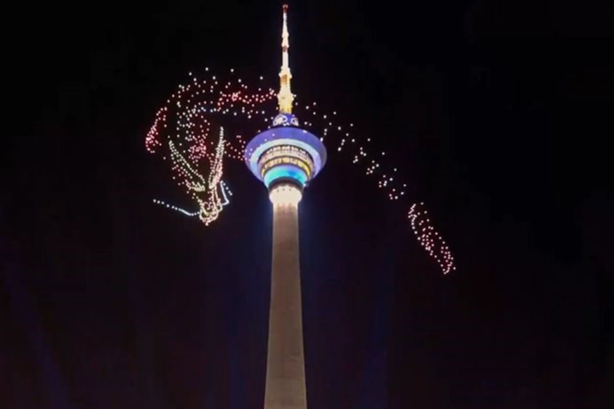 Yaklaşık bin dron kullanılarak oluşturulan “uçan ejderha” kulenin etrafında tur attı. İlginç dron gösterisi şehrin büyük bir bölümünde izlendi.