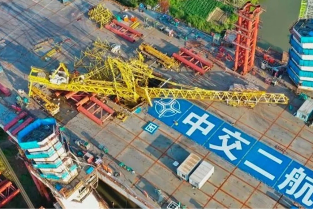 Çin’in Sichuan eyaletine bağlı Jianyang kentinde bugün otoyol köprüsü inşaatında kule vinci devrildi.