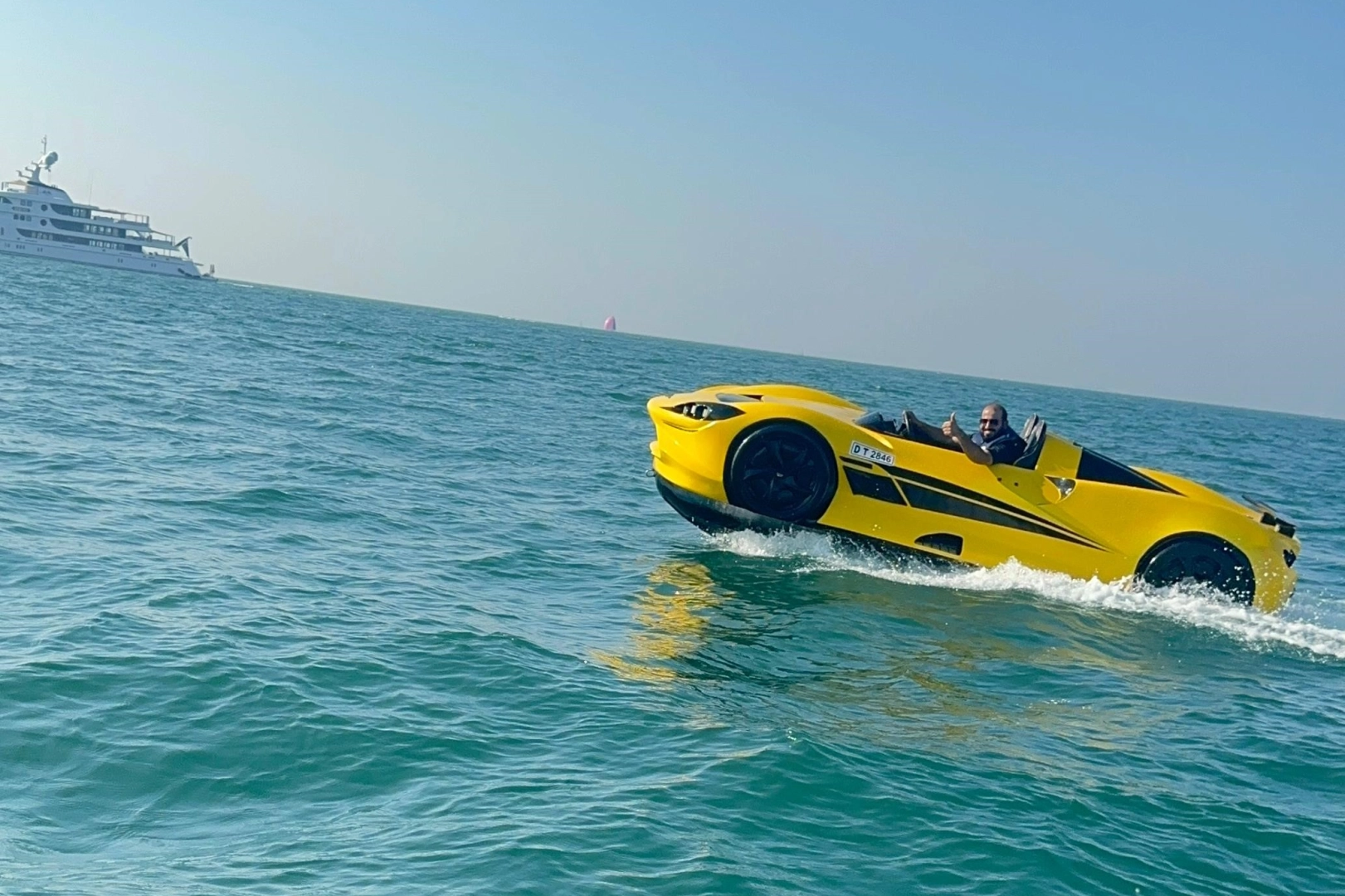 Dubai’de Ferrari görünümlü jet ski eğlencesi dikkat çekti.