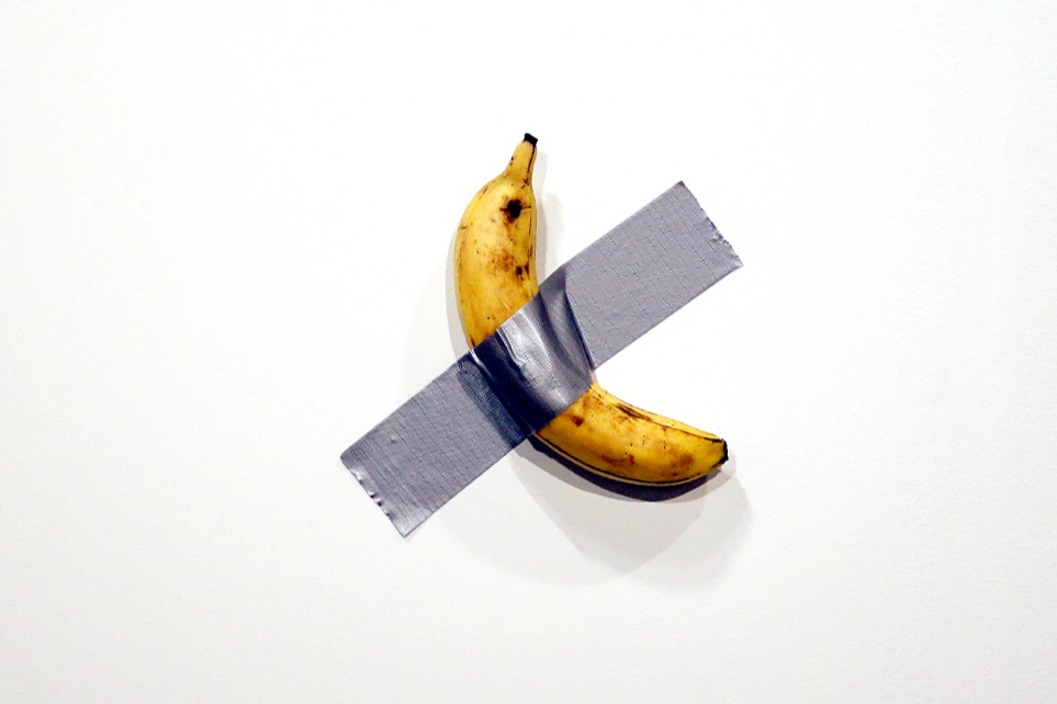 Cattelan'ın muz eseri, 2019'da ilk kez sergilendiği ABD'nin Florida eyaletinde yer alan Miami'deki Art Basel'de 120 bin dolara satılmıştı. Satışın ardından performans sanatçısı David Datuna muzu yemiş ve yerine hızla yenisi konulmuştu. 2023'te Güney Kore'deki Leeum Sanat Müzesi'nde bir öğrenci de aç olduğunu söyleyerek, sanat eserini yemişti.