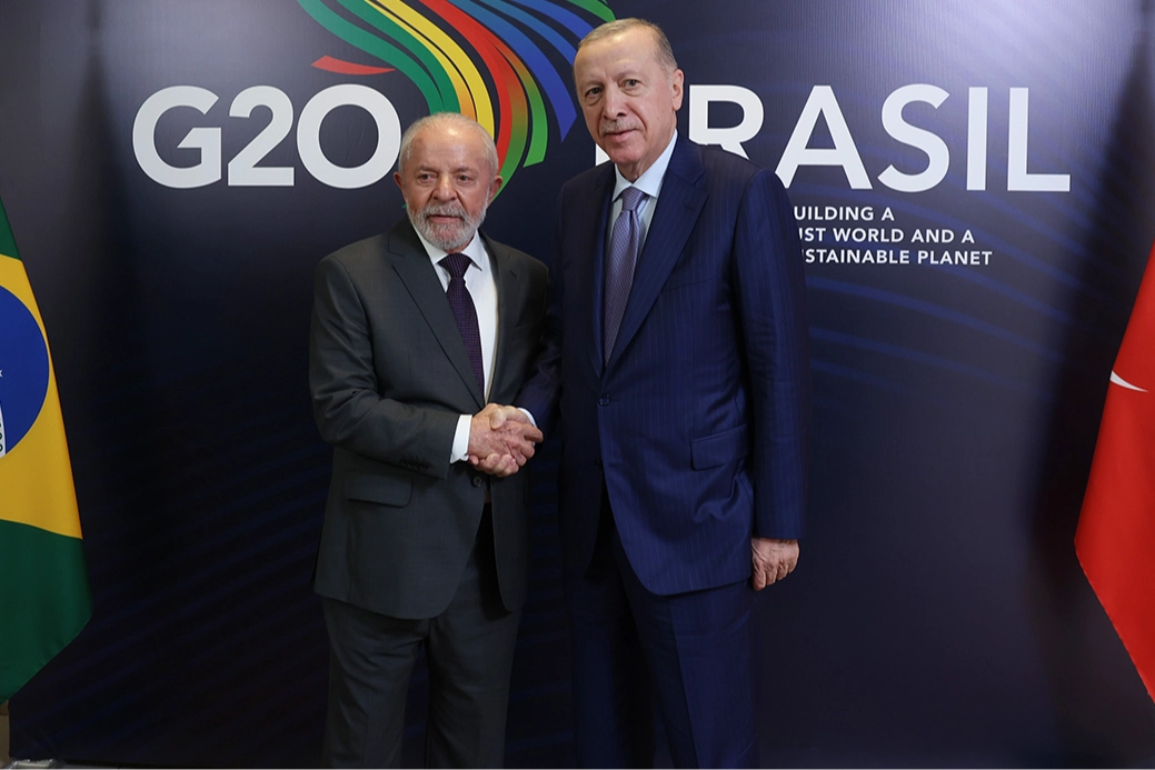 Cumhurbaşkanı Erdoğan, G20 Liderler Zirvesi için gittiği Brezilya’daki temasları kapsamında Brezilya Devlet Başkanı Lula Da Silva ile gerçekleştirdiği görüşmede Türkiye ile Brezilya arasındaki ilişkilerin gelişiminde üst düzey diyaloğun önemli olduğunu, iki ülke arasındaki stratejik ortaklığın geliştirilmesi için çalışmaya devam edeceklerini ifade etti. Cumhurbaşkanı Erdoğan, Brezilya’nın İsrail saldırganlığı karşısındaki duruşunun takdire şayan olduğunu, Türkiye’nin İsrail’e silah ve mühimmat satışının engellenmesi için Birleşmiş Milletler nezdinde girişim başlattığını, Filistin’de kalıcı ateşkesin tesisi, insani yardımların kesintisiz şekilde bölgeye ulaştırılması ve iki devlet temelinde adil bir çözüm için Türkiye’nin elinden geleni yapmaya devam edeceğini belirtti.