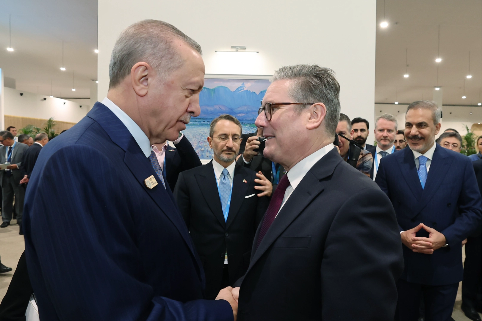 Cumhurbaşkanı Recep Tayyip Erdoğan, Birleşmiş Milletler (BM) İklim Değişikliği Çerçeve Sözleşmesi 29. Taraflar Konferansı (COP29) Dünya Liderleri İklim Eylemi Zirvesi'ne (WLCAS) katılmak üzere geldiği Bakü'de ikili görüşmelerine başladı. Cumhurbaşkanı Erdoğan, temasları kapsamında İngiltere Başbakanı Keir Starmer, ile bir araya geldi. Erdoğan, COP29 Dünya Liderleri İklim Eylemi Zirvesi'nde hitap edecek.