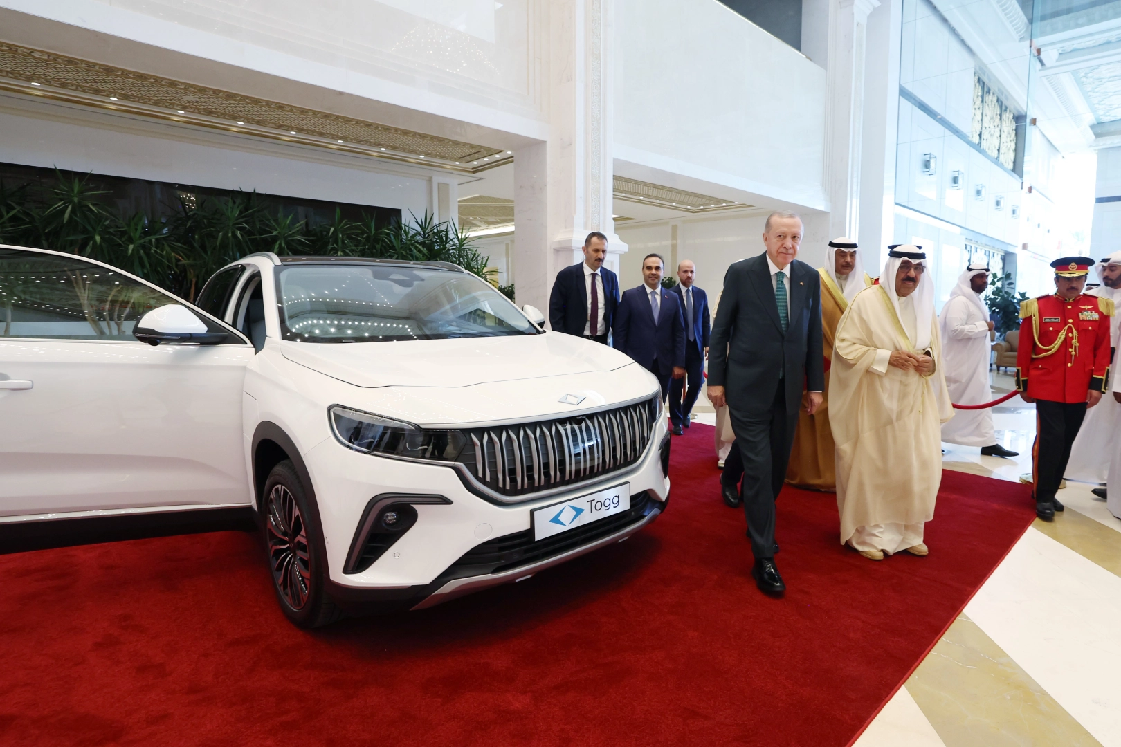 Cumhurbaşkanı Recep Tayyip Erdoğan, resmi ziyaret kapsamında bulunduğu Kuveyt'teki temaslarını sürdürüyor. Cumhurbaşkanı Erdoğan, Kuveyt Uluslararası Havalimanı'na inişinde Kuveyt Emiri Meşal el-Ahmed el-Cabir es-Sabah tarafından resmi törenle karşılanmasının ardından programı dahilindeki görüşmelerin gerçekleştirileceği alana geldi. Cumhurbaşkanı Erdoğan, temasları kapsamında Kuveyt Emiri es Sabah'a beyaz renkte Togg aracı hediye etti. Kuveyt ziyaretinde Cumhurbaşkanı Erdoğan'a; eşi Emine Erdoğan, Dışişleri Bakanı Hakan Fidan, Enerji ve Tabii Kaynaklar Bakanı Alparslan Bayraktar, Hazine ve Maliye Bakanı Mehmet Şimşek, Millî Savunma Bakanı Yaşar Güler, Sanayi ve Teknoloji Bakanı Mehmet Fatih Kacır, Ticaret Bakanı Ömer Bolat eşlik ediyor.