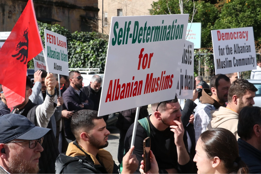 Güvenlik önlemlerin alındığı protestoda göstericiler “Gülenciler Arnavutluk İslam Birliği’nin işgalinden çekilsinler” , "FETÖ Arnavutluk İslam Birliği’ni rahat bırak”, “Arnavutluk İslam Birliği için yasallık” ve “Arnavutluk İslam Birliği’ni FETÖ dokunaçlarından kurtarın” yazılı pankartlar taşıdı.