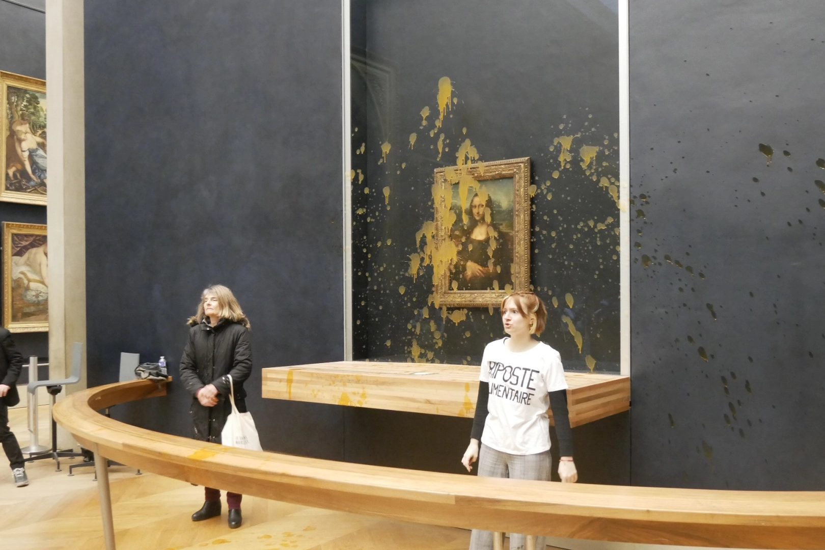 Fransa’nın başkenti Paris’teki Louvre Müzesi yine bir protesto gösterisine sahne oldu. Müzede sergilenen ve dünyanın en önemli sanat eserlerinden biri olarak kabul edilen Leonardo da Vinci'nin 16. yüzyılda yaptığı Mona Lisa tablosuna 2 aktivist çorba fırlattı. Tişötlerinde “gıda tepkisi” yazan aktivistler, “sağlıklı ve sürdürülebilir gıda hakkı” talep etti. Saldırının ardından kurşungeçirmez bir camla korunan tablo, herhangi bir zarar görmedi. Tablo birçok kez saldırıya uğradı Mona Lisa tablosu, 1950’lerin başında bir ziyaretçinin asit dökmesinin ardından zarar görmüş ve bu olayın ardından güvenlik camının arkasına alınmıştı. Ardından 2019 yılında Louvre Müzesi tabloyu korumak için kurşungeçirmez camın daha şeffaf bir formunun yerleştirildiğini açıklamıştı. Tabloya 2022 yılında ise başka bir aktivist pasta fırlatmış ve insanları “Dünya’yı düşünmeye” çağırmıştı. Ayrıca, 1911 yılında Louvre Müzesi çalışanı olan Vincenzo Peruggia, müzede gece boyunca bir dolapta saklandıktan sonra tabloyu çalmış, 2 yıl sonra İtalya’nın Floransa şehrinde bir antikacıya satmaya çalışırken yakalanmıştı.