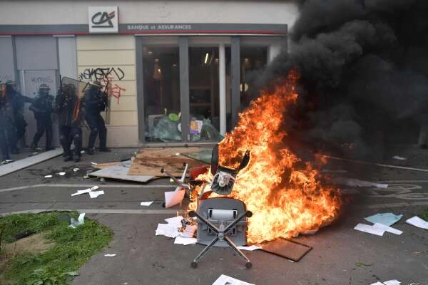 Fransa'da Anayasa Konseyinin emeklilik reformunu kısmen onaylamasının ardından protestolarda tansiyon yükseliyor. Karara tepki gösteren protestocularla polis arasında arbede yaşanırken, sokaklarda çöp konteynerları ateşe verildi.